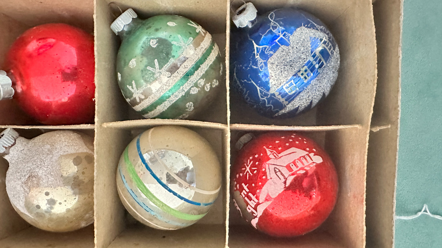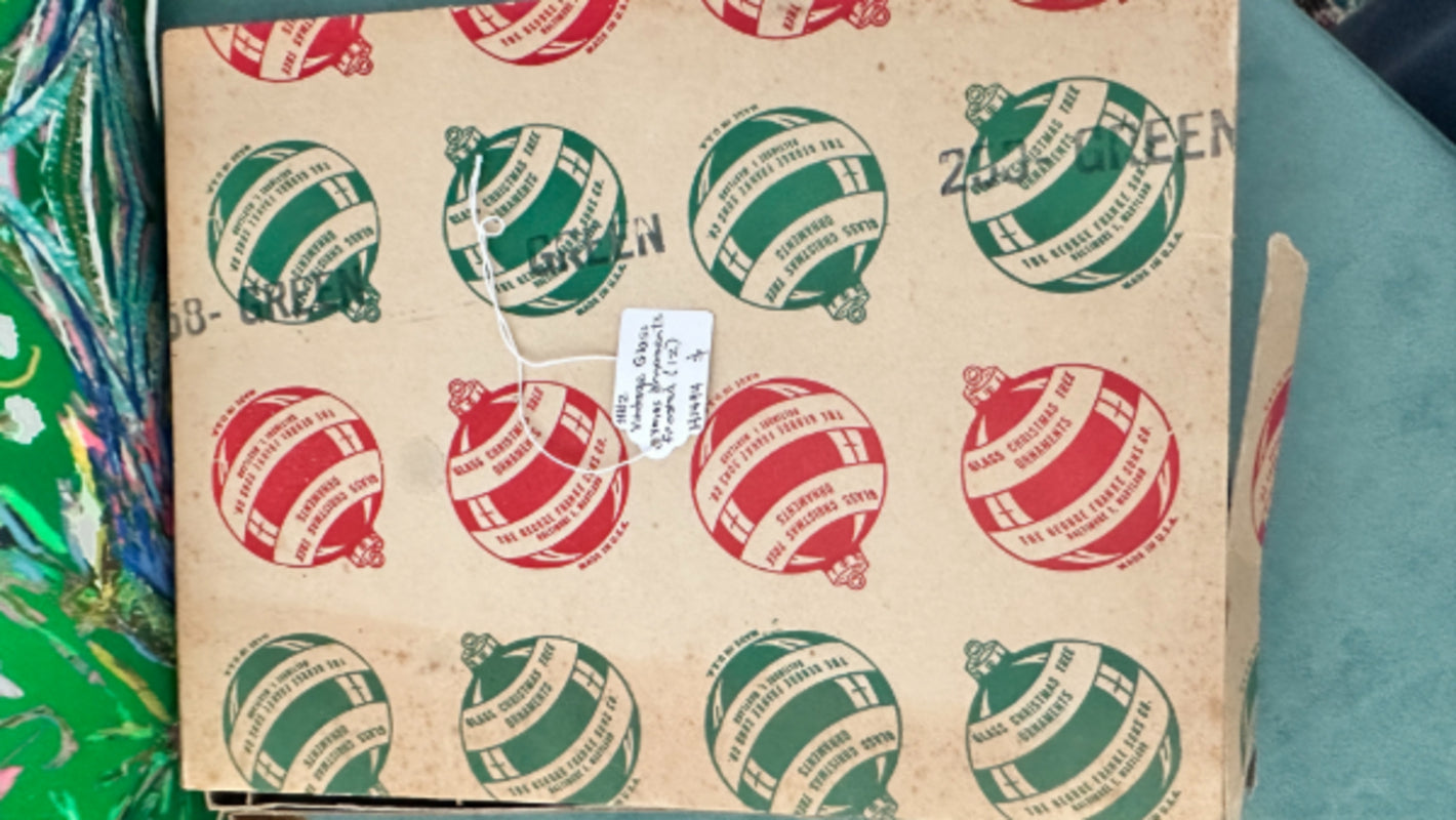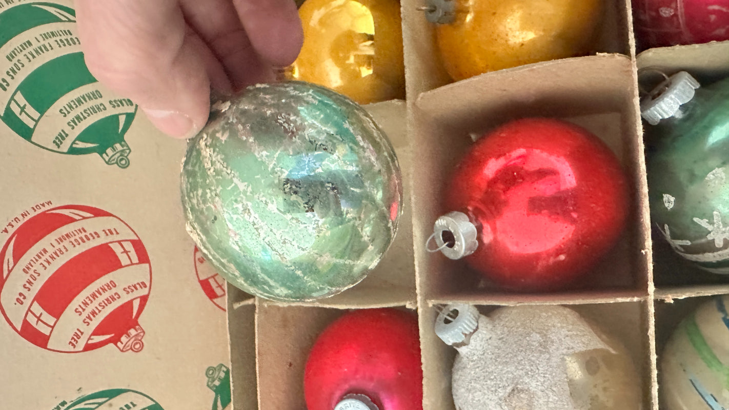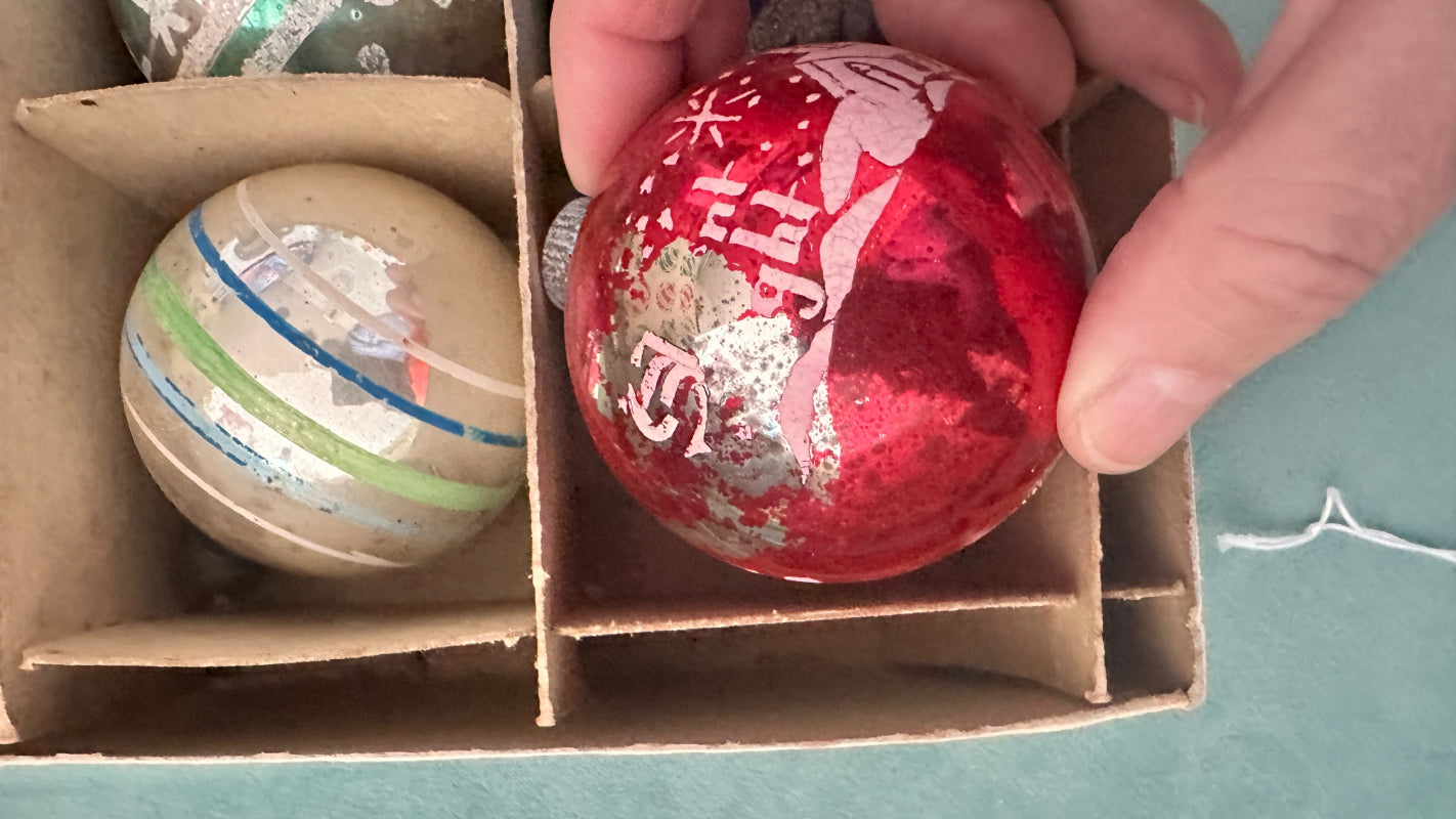 Vintage Christmas Ornaments, Set of 12, Some Frosted, In Box, Shiny Brite, Made in USA
