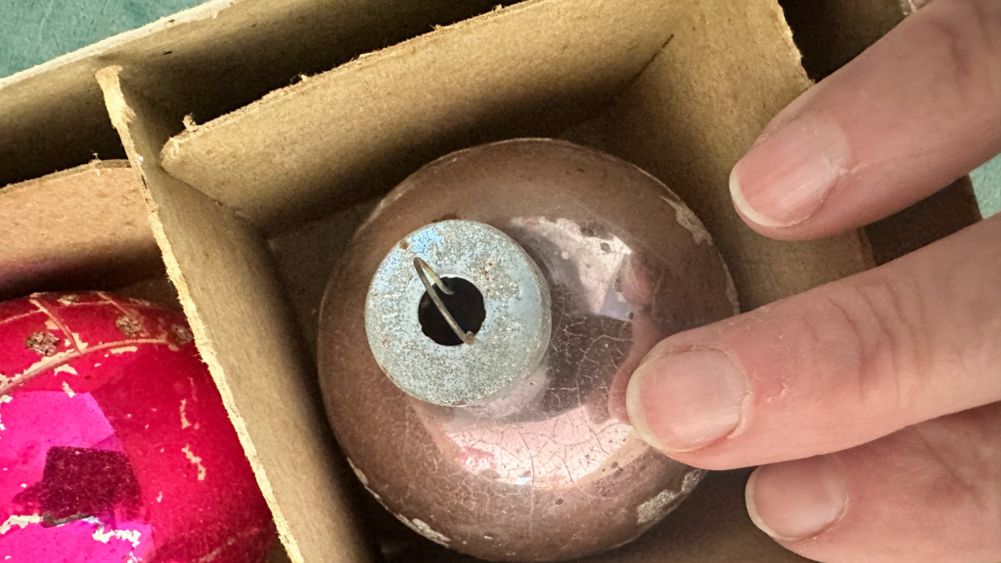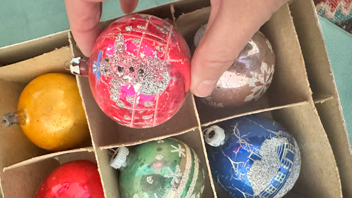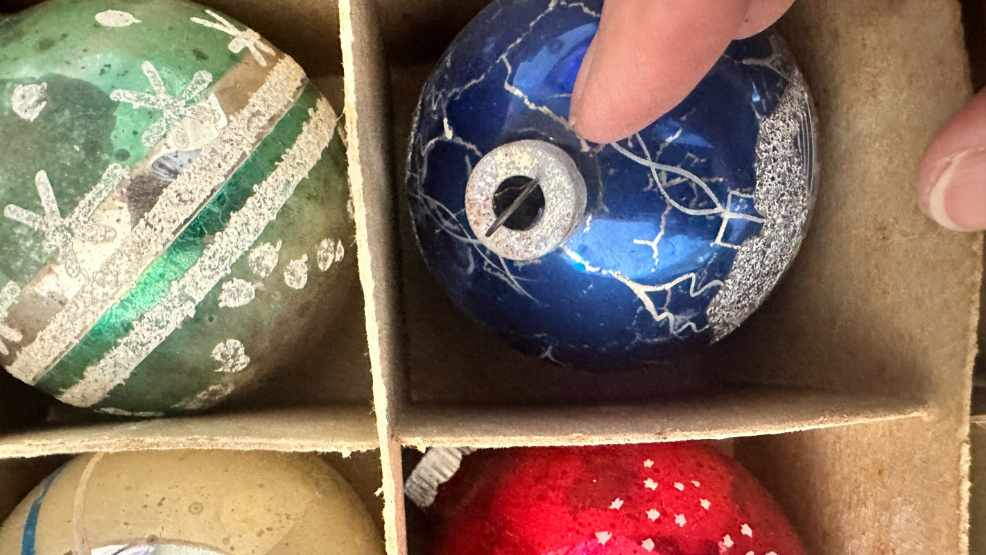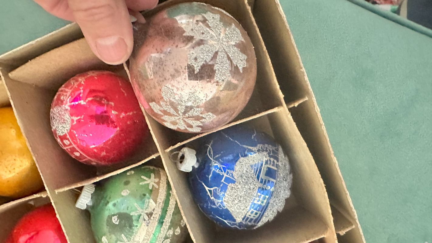 Vintage Christmas Ornaments, Set of 12, Some Frosted, In Box, Shiny Brite, Made in USA