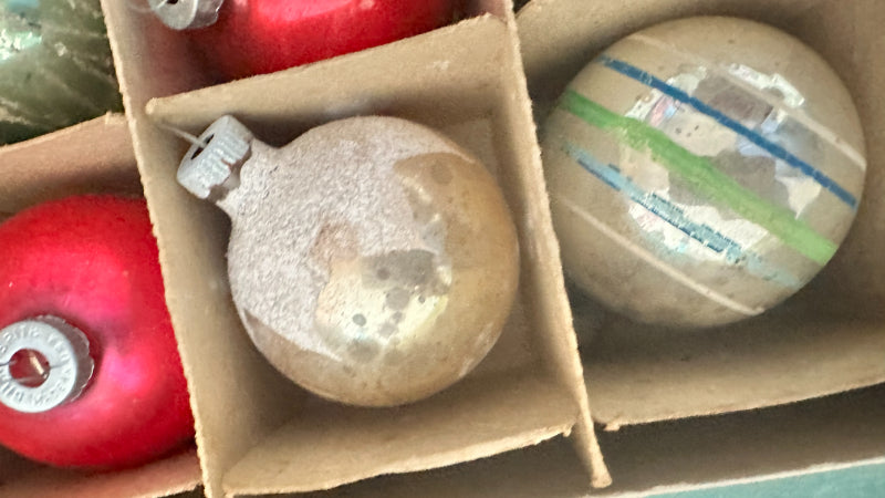 Step back into mid-century holiday tradition with this Vintage Shiny Brite Christmas ornament set, made in the USA and presented in its original box. The set includes twelve classic glass ornaments, a beautiful mix of shiny and frosted finishes that capture the iconic sparkle Shiny Brite is known for. With their timeless shapes and festive charm, these ornaments reflect the golden age of American Christmas décor. Perfect for collectors or for creating an authentic vintage holiday tree, this boxed set brings nostalgia, craftsmanship, and seasonal magic to your celebrations.