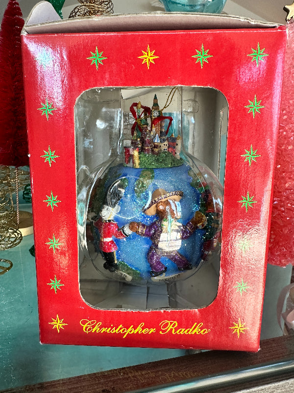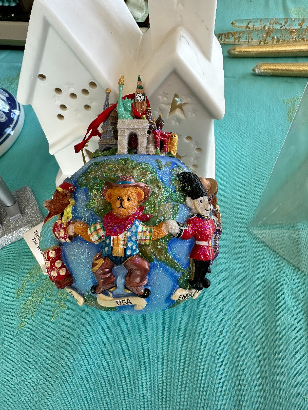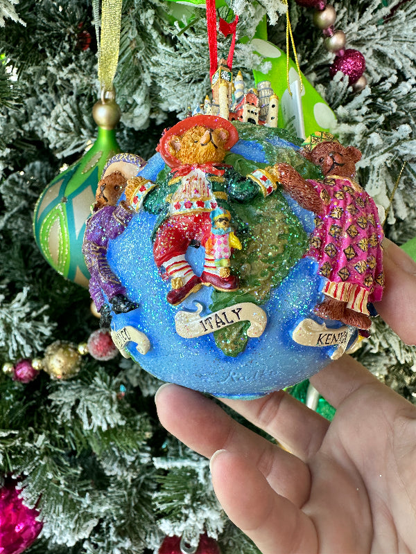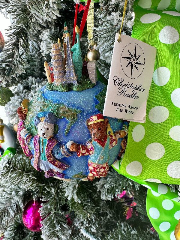 Vintage Ornament Christopher Radko - Teddies Around World, In Original Box