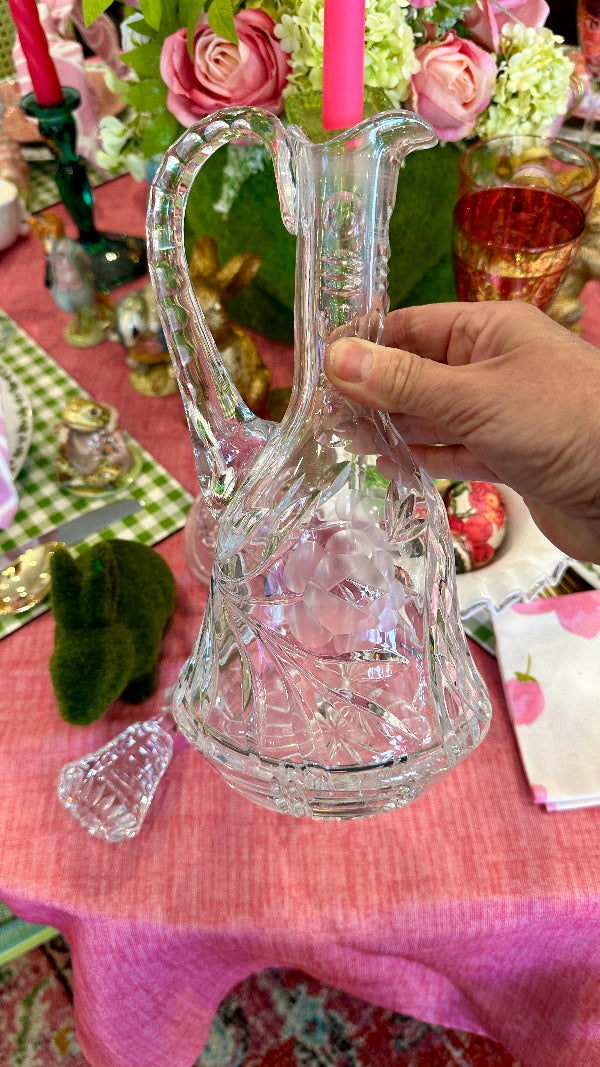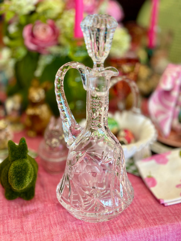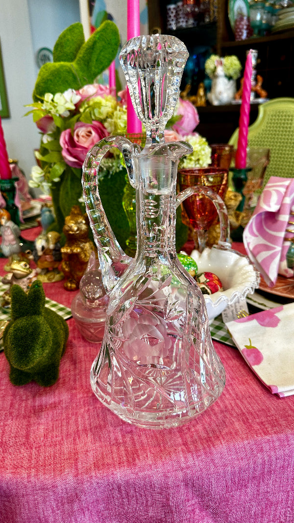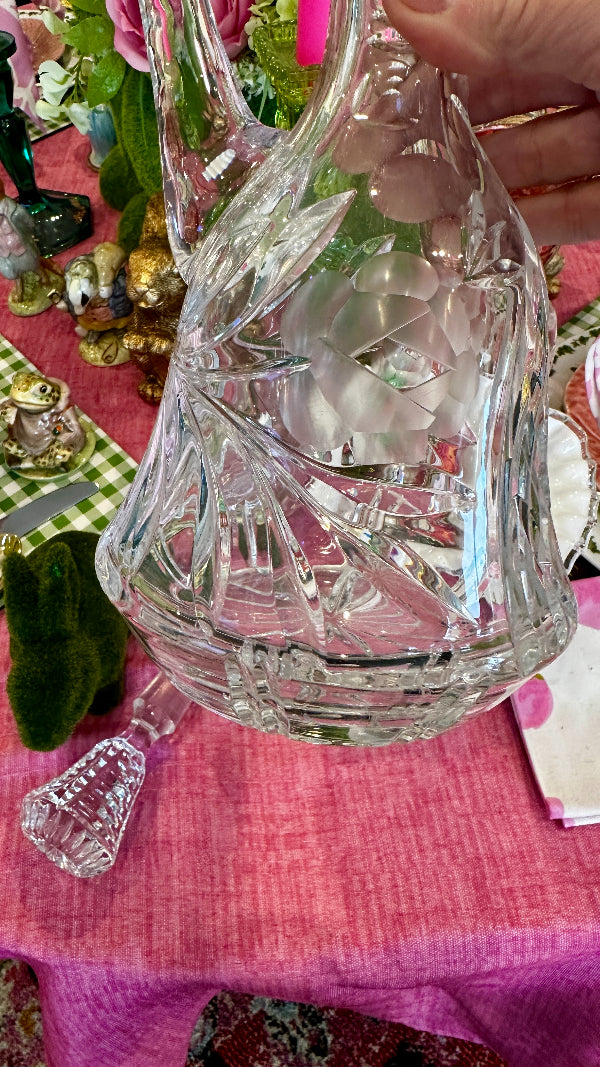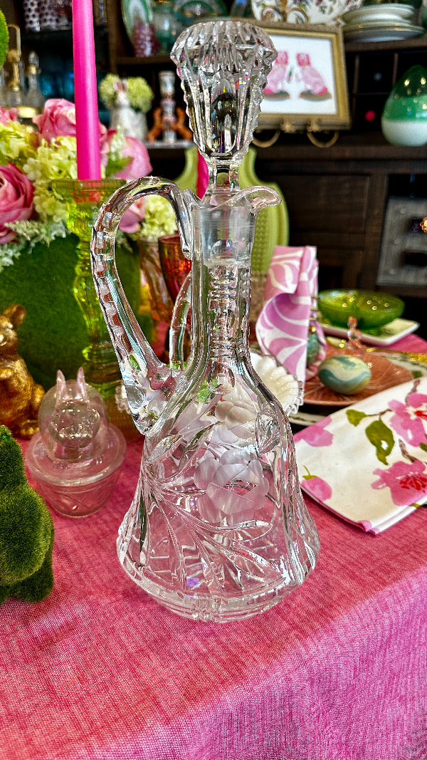 Vintage Crystal Decanter, Cut Frosted Glass, Lead Crystal Floral Design