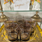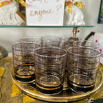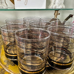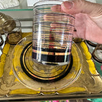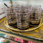 Vintage Culver Glasses and Tray Set, Black and Gold Stripe, 8 Lowball Glasses
