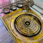 Love the show Mad Men? This has all the John DRaper vibes for that Mid Century Modern look. A set of 8 low ball glasses for sipping bourbon or drinking an old fashioned and it comes on a gorgeous tray. Some glasses have a slight bit of paint wear but hardly noticeable. Made by the Culver Glass Company in the USA. Amazing vintage condition no chips or cracks.