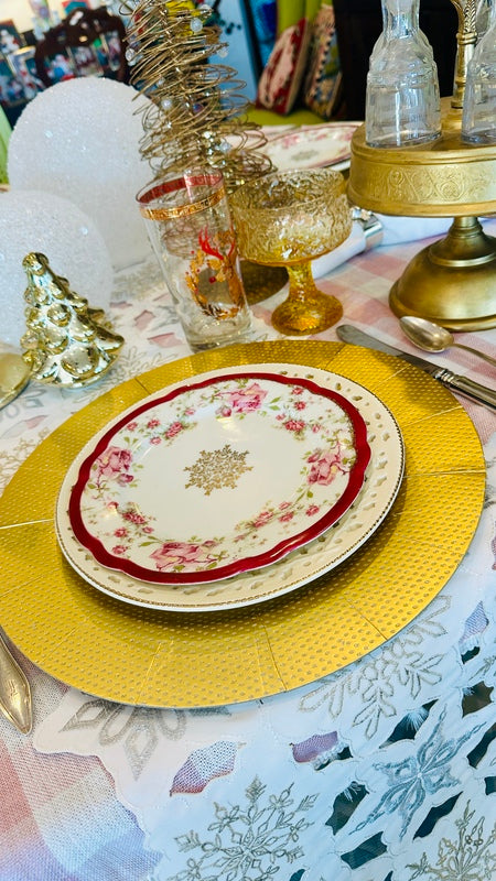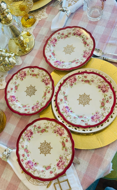 Add a touch of elegance to your dessert table with these Vintage Snowflake Dessert Plates from Imperial Crown China Austria. Featuring a delicate rose design and intricate snowflake details, this set of 4 plates is perfect for holiday gatherings or adding a vintage charm to any occasion. Timeless and beautifully crafted, they’re a must-have for collectors and festive entertaining.