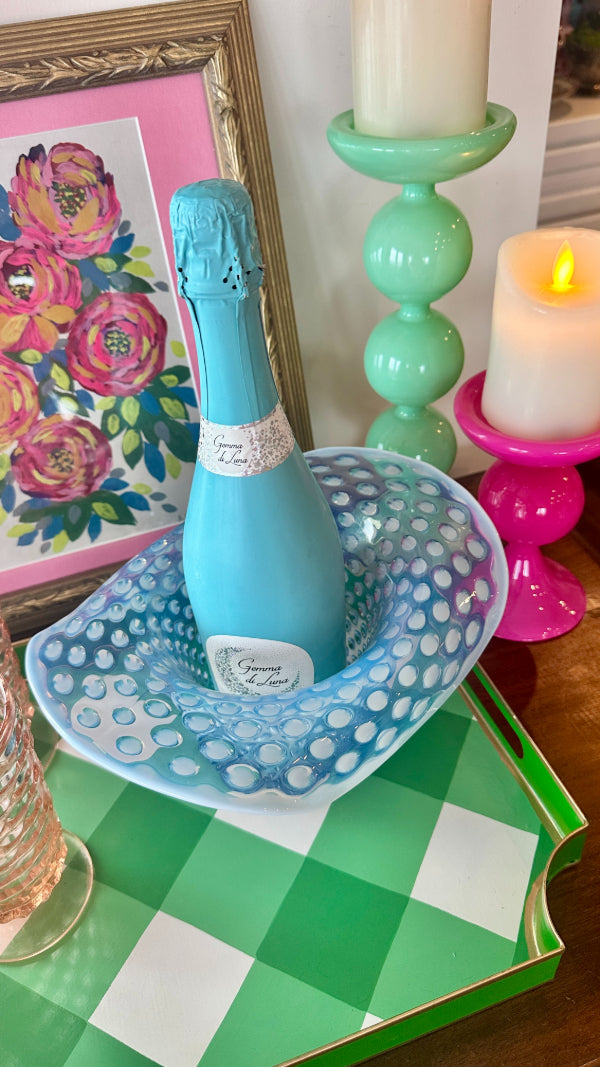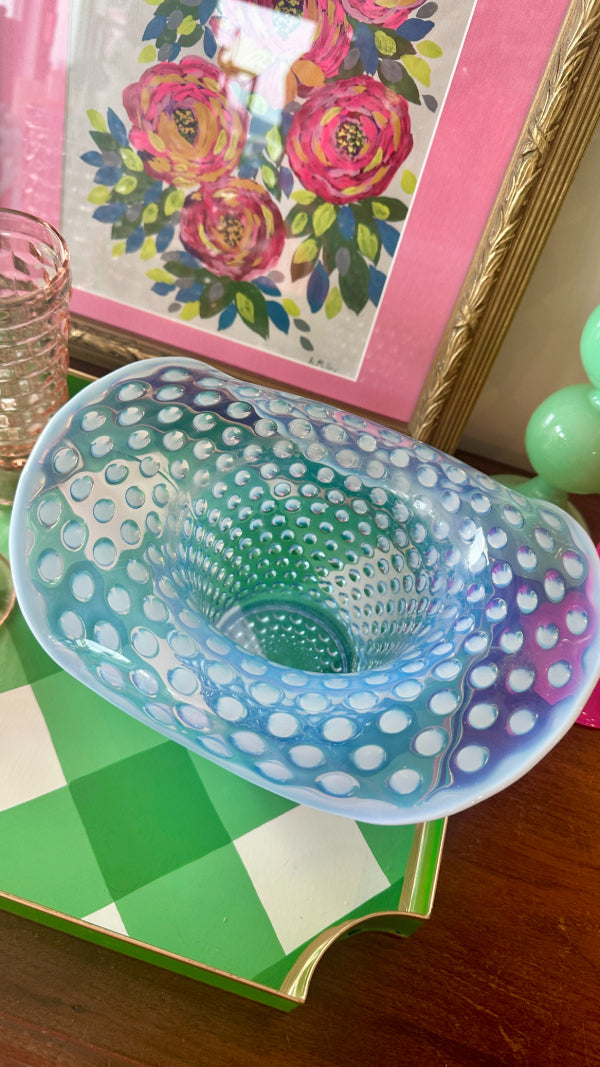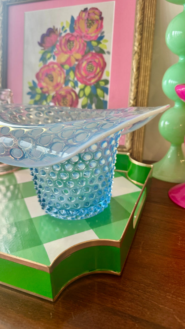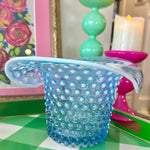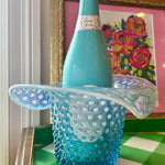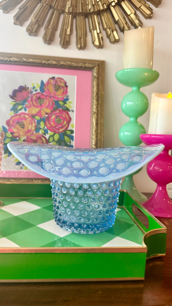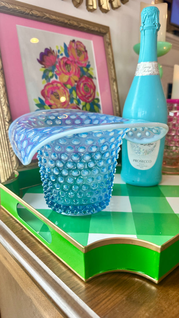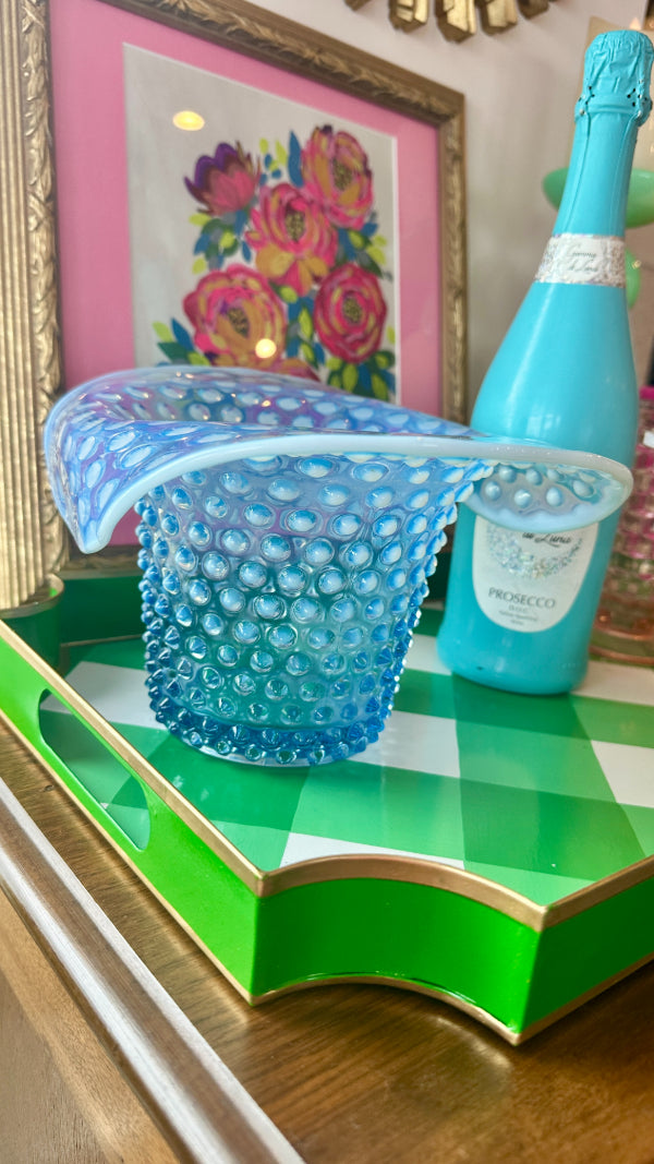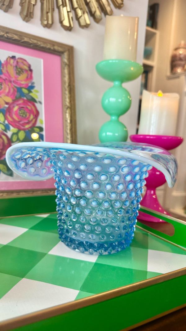 Vintage Duncan Miller Blue Opalescent Ice Bucket, Planter, Hat Shape