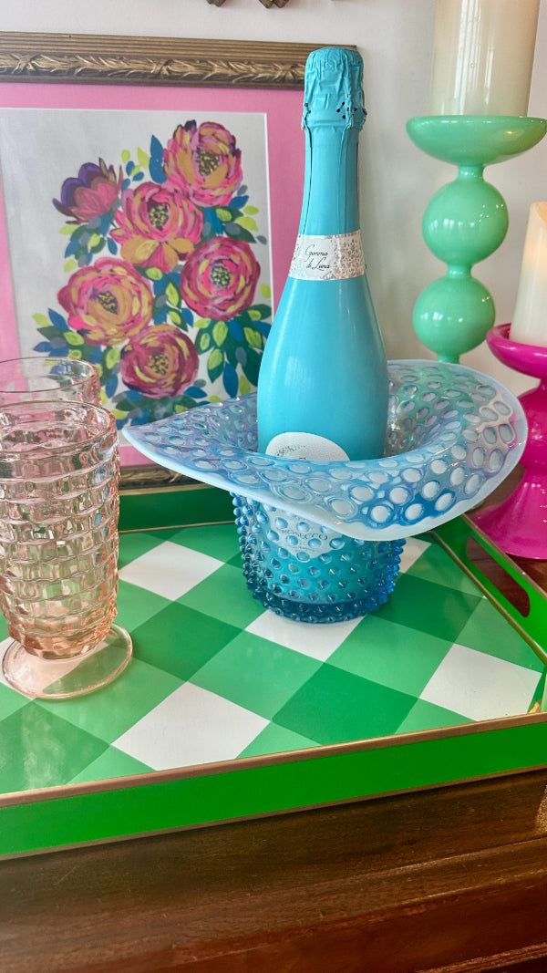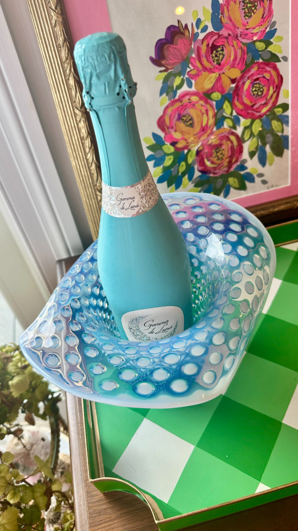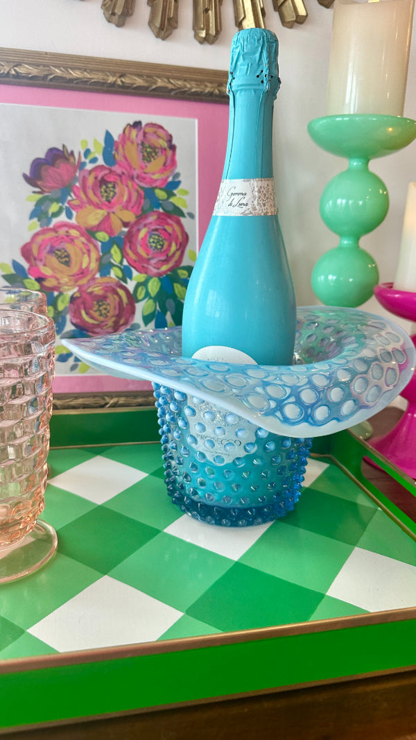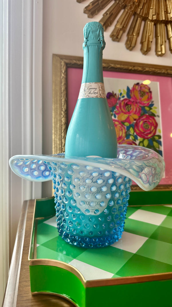 Serve in style with this vintage Duncan Miller Blue Opalescent ice bucket hat. Crafted from beautiful opalescent glass, it features a soft blue hue with the signature shimmering finish that makes Duncan Miller pieces so collectible.