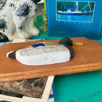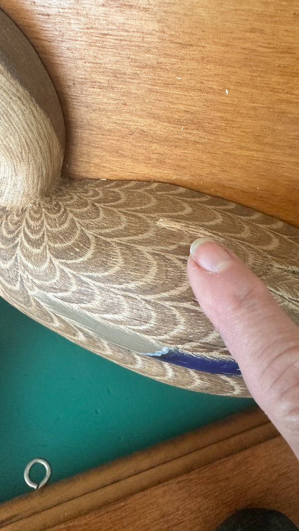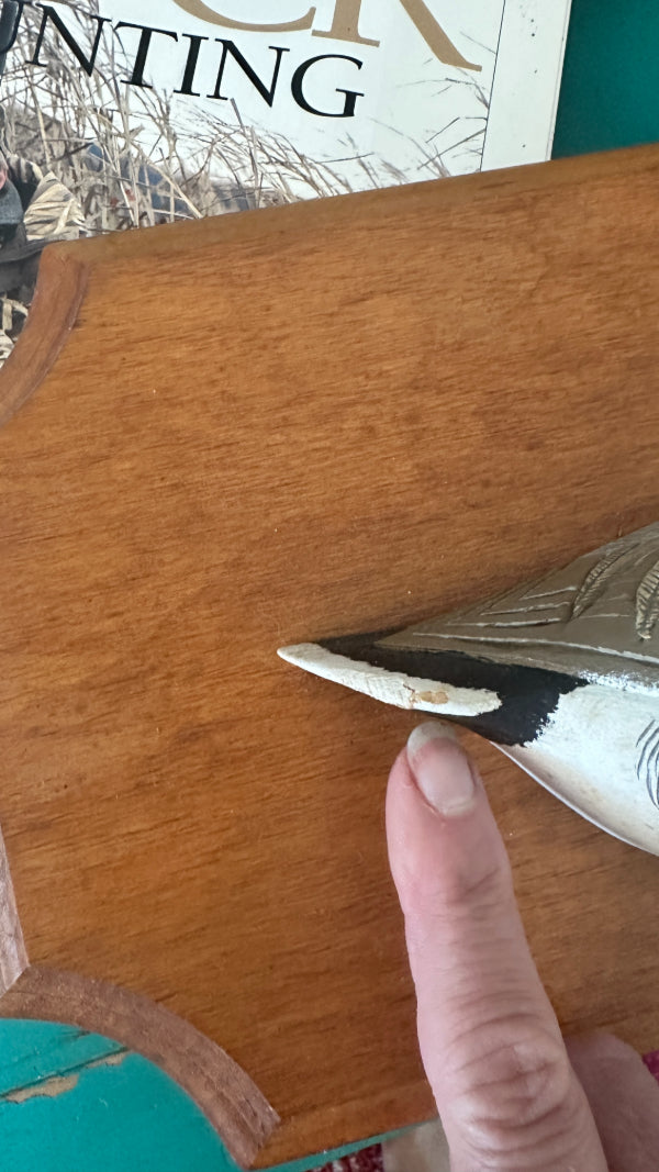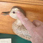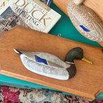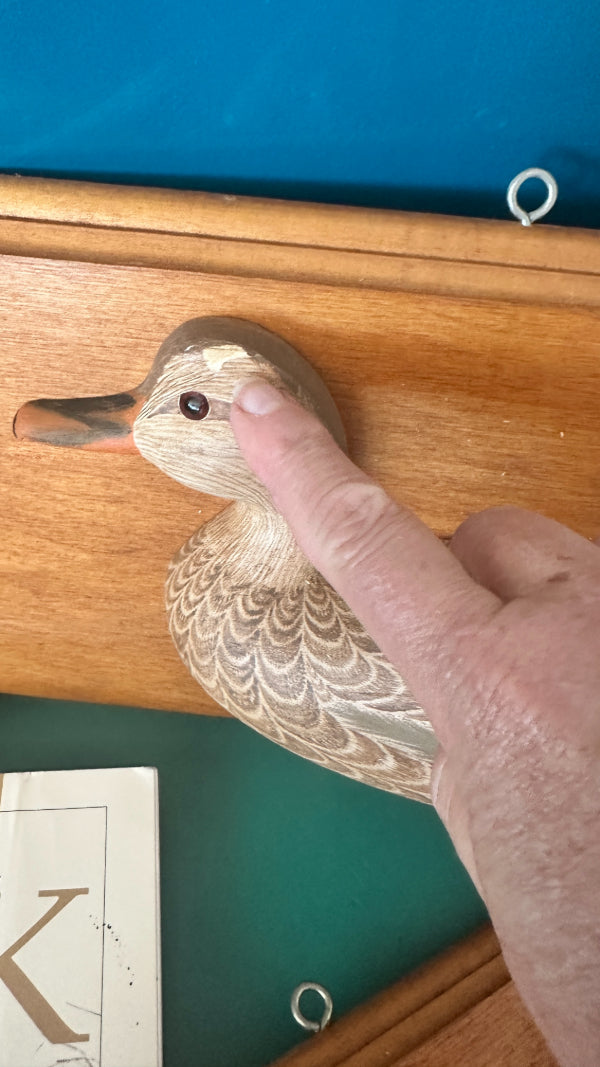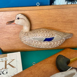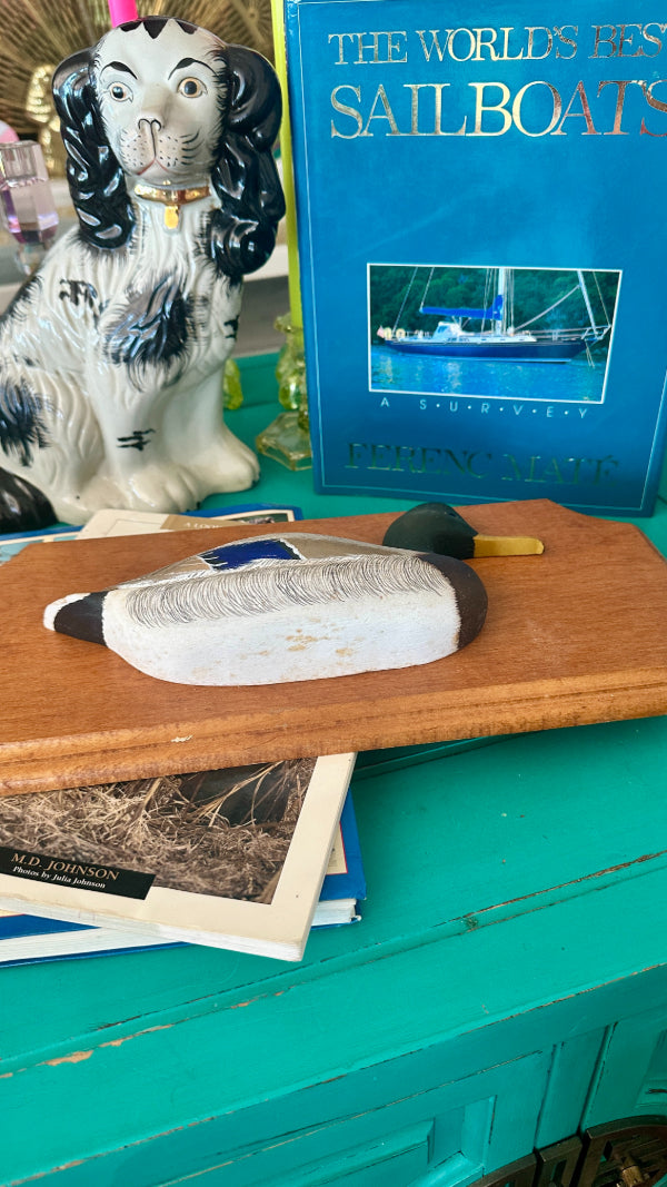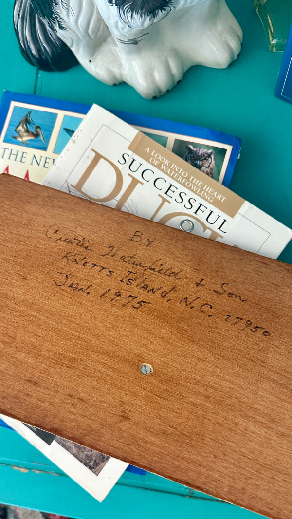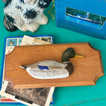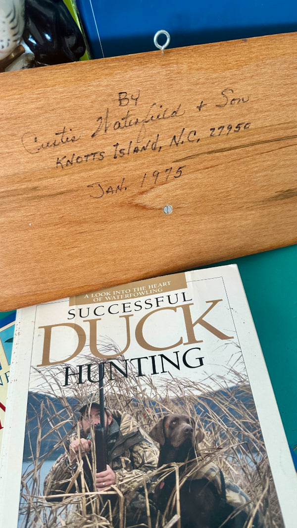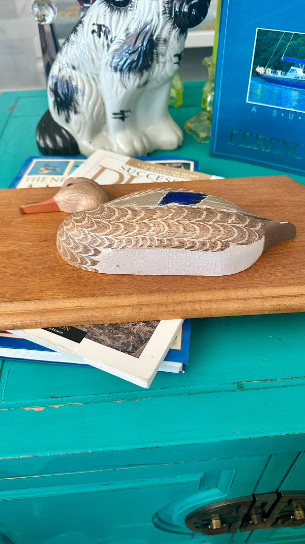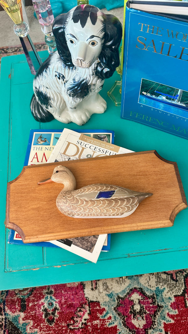 This pair of vintage duck plaques, hand-carved in 1975 and signed by the artist, showcases detailed craftsmanship in solid wood. A charming nod to rustic wildlife art—perfect for cabin decor or collectors of folk and nature-inspired pieces. Carved by a local on Knotts Island, NC. slight wear typical with age. Option to purchase separately or as a pair.