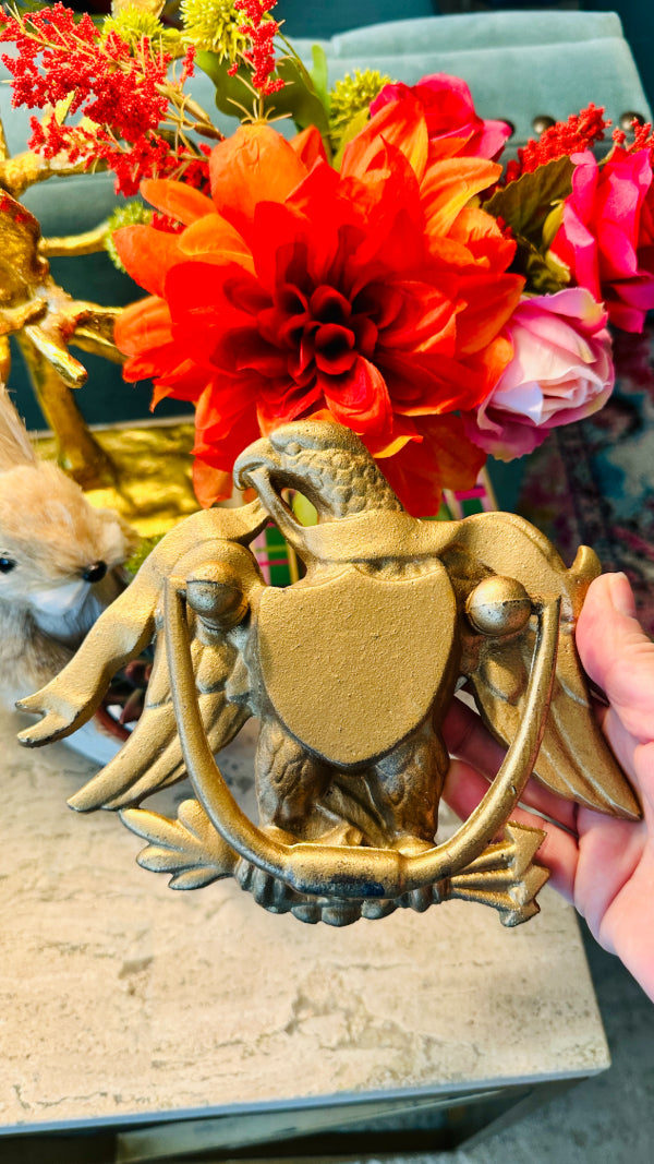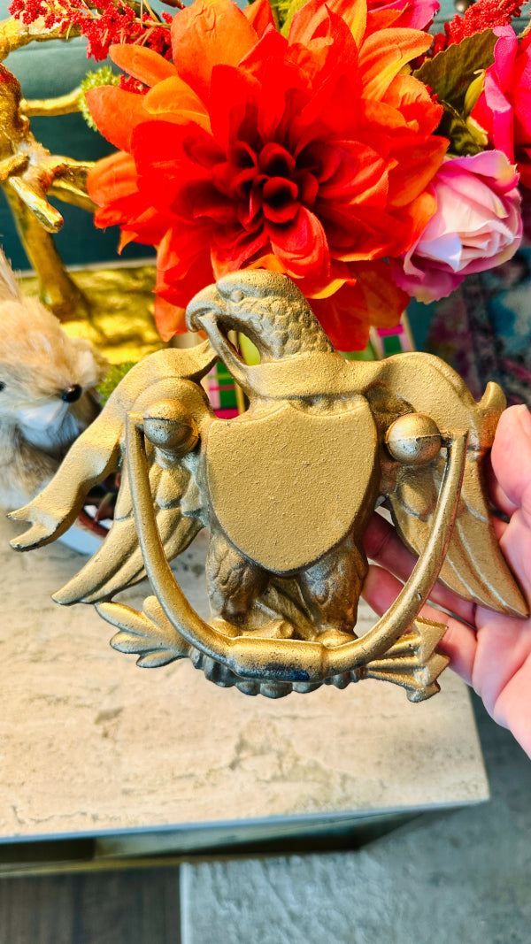 This vintage eagle door knocker by Wilton Products is a striking addition to any front door. Featuring intricate detailing and a bold, classic eagle design, it brings a sense of strength and elegance to your home’s entrance. Made from durable materials, this timeless piece offers both functionality and style, making it perfect for vintage-inspired or traditional décor. Whether you’re a collector or simply looking to add a unique touch to your home, this beautifully crafted door knocker is sure to make a memorable first impression.