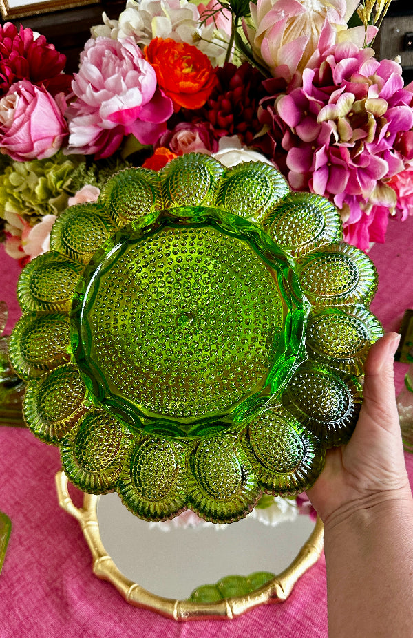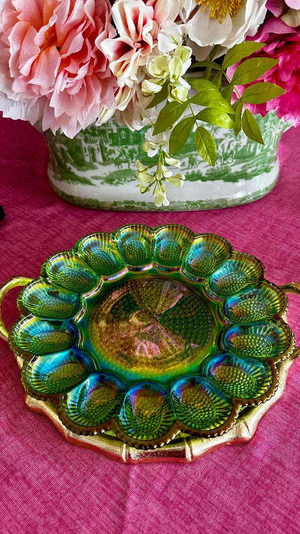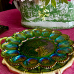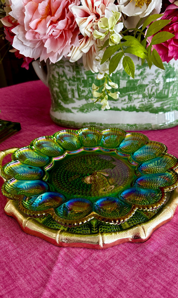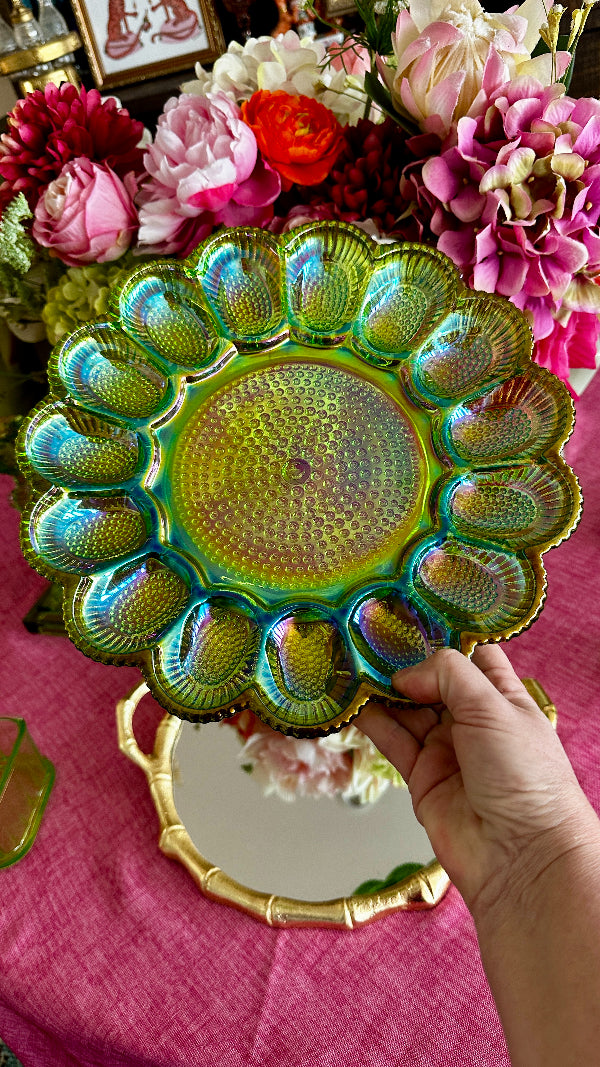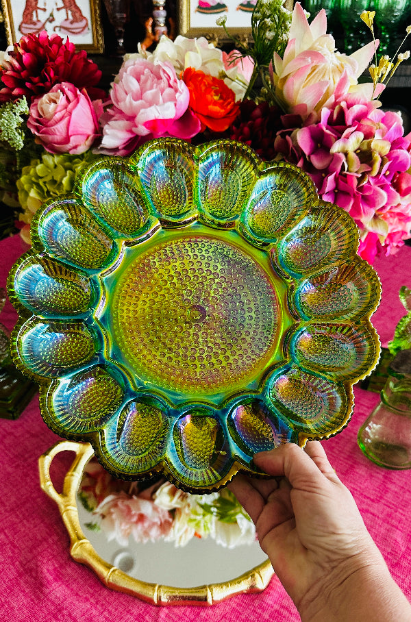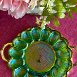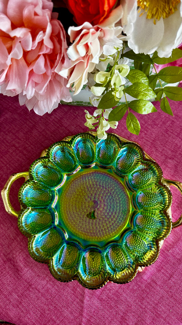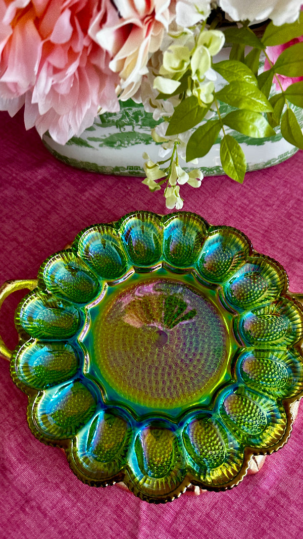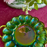 Vintage Egg Plate, Green Carnival Fenton Glass, Iridescent