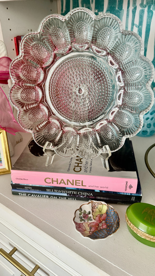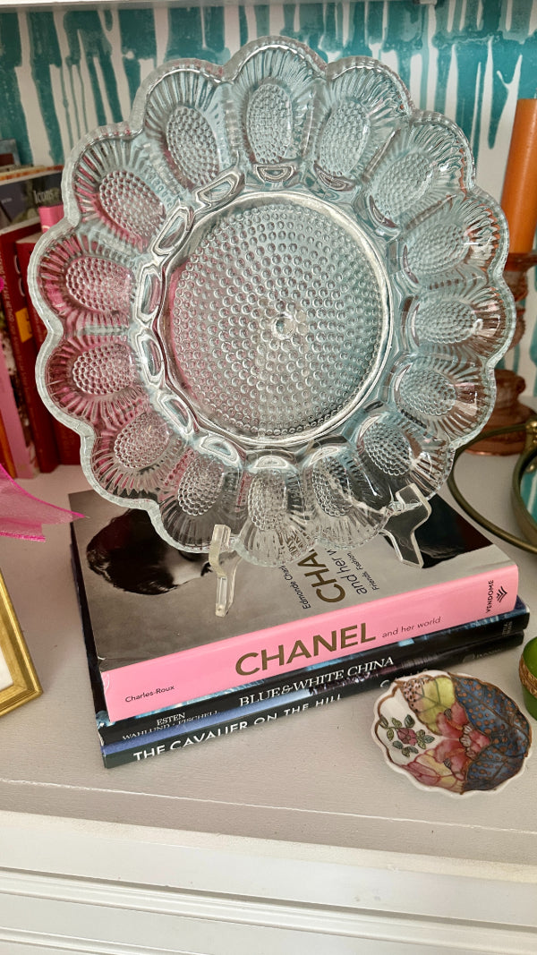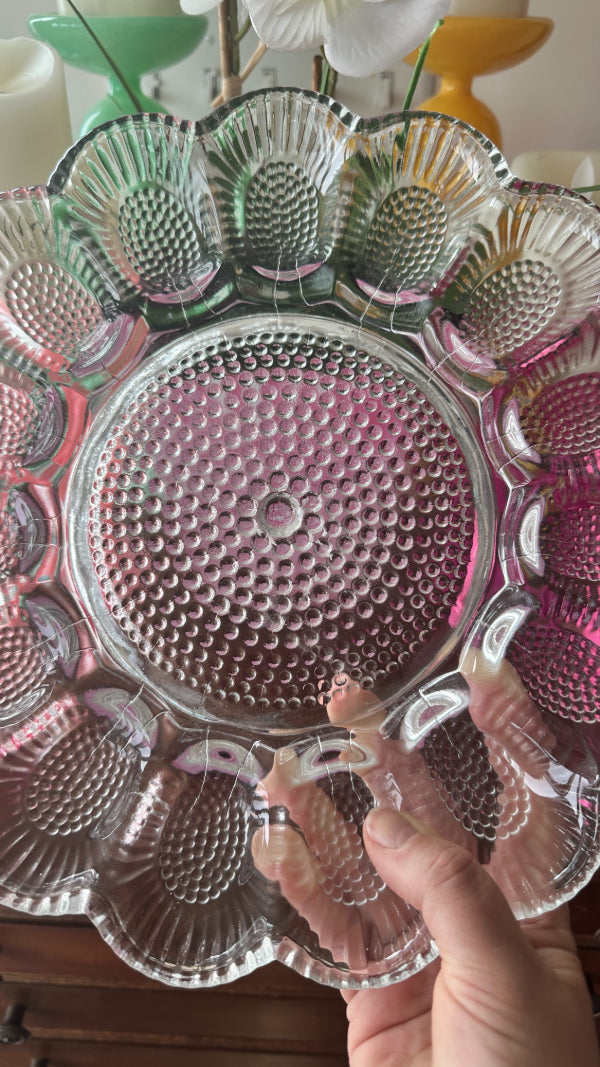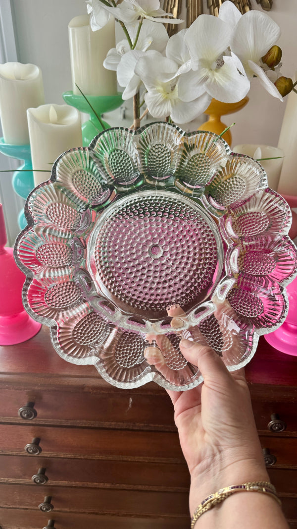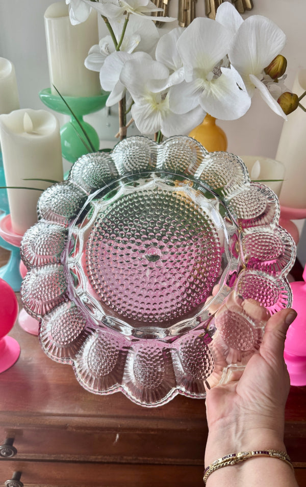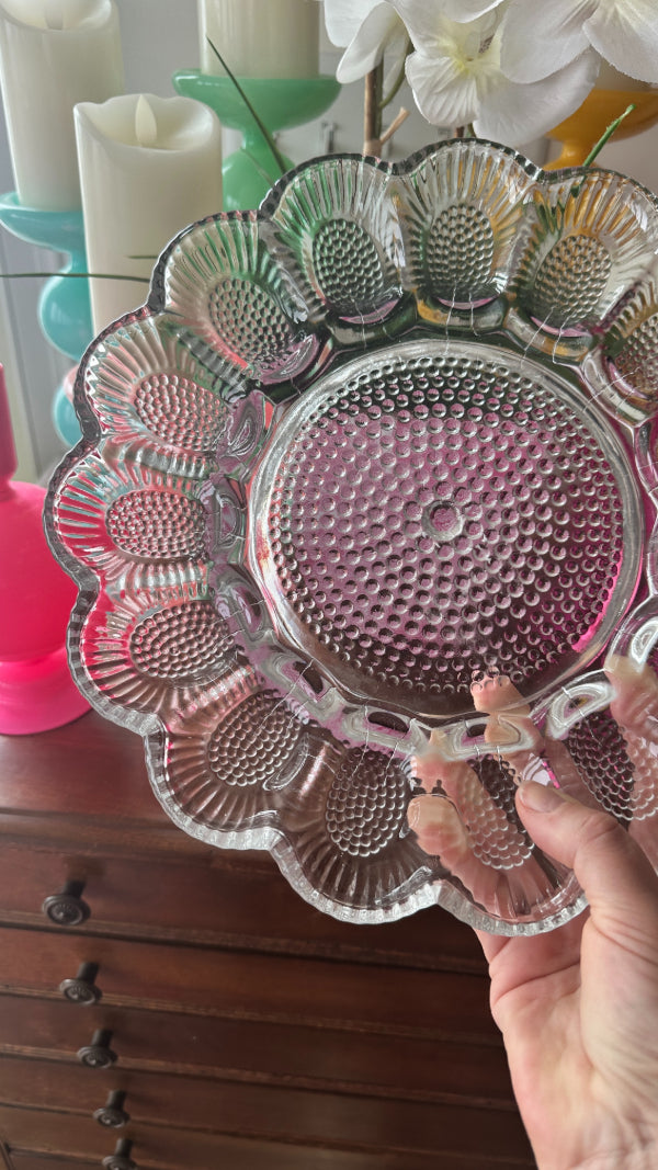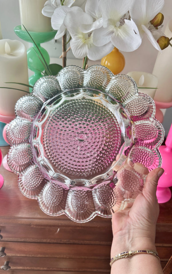 Vintage Egg Plate, Indiana Glass Hobnail 1960s