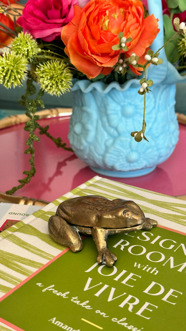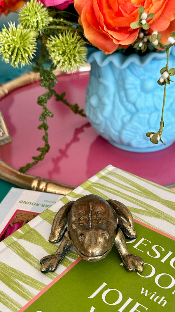 This vintage Elpec brass frog with a hinged design is a delightful and unique piece for any collector or home décor enthusiast. Crafted from solid brass, the frog features intricate detailing and a functional hinge, allowing it to open and close for added charm. Its playful yet elegant design makes it a perfect decorative accent for desks, shelves, or display cases. Whether you're a lover of vintage animal figurines or seeking a distinctive piece for your collection, this charming frog adds a whimsical touch with timeless craftsmanship.