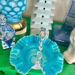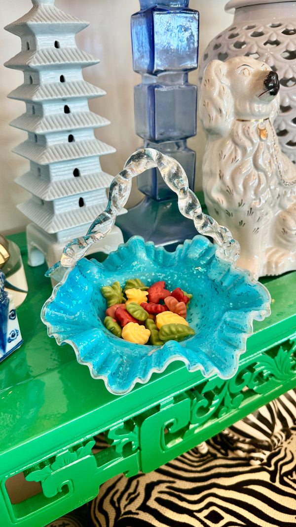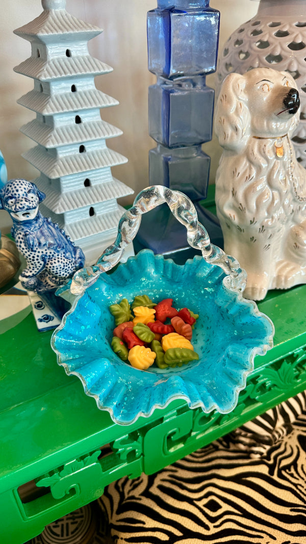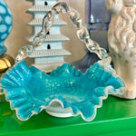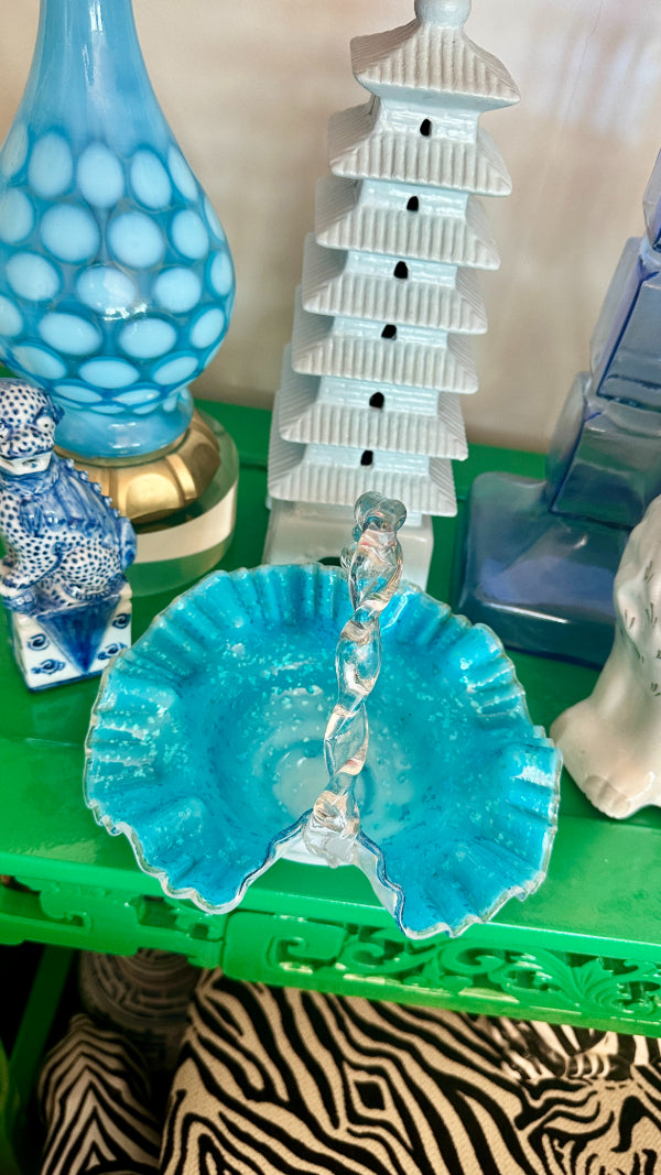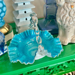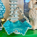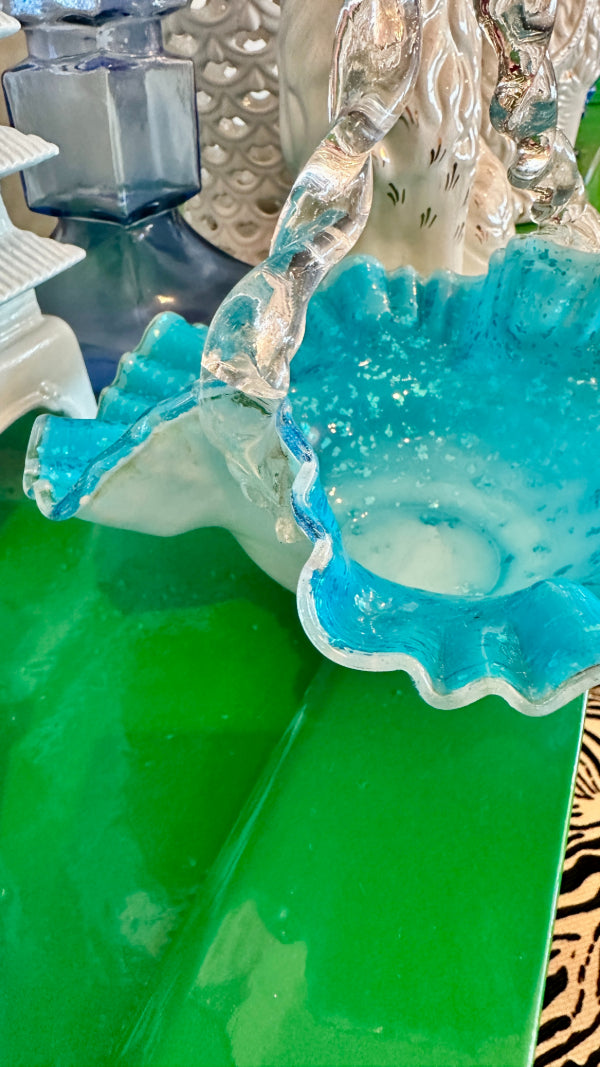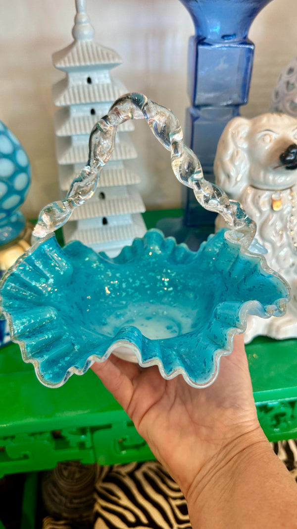 Discover timeless elegance with this Vintage Fenton Bride’s Bowl, a rare handmade piece featuring graceful blue glass and delicately applied handles. Fenton’s renowned craftsmanship shines through in the exquisite detailing and rich translucent color, making this bowl a stunning centerpiece for display or collection. Elegant and unique, this vintage treasure embodies the artistry and charm of classic American glassmaking—a true heirloom-quality find for collectors and décor enthusiasts alike.