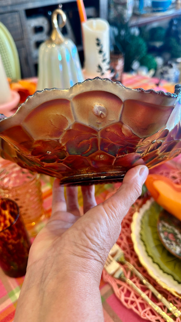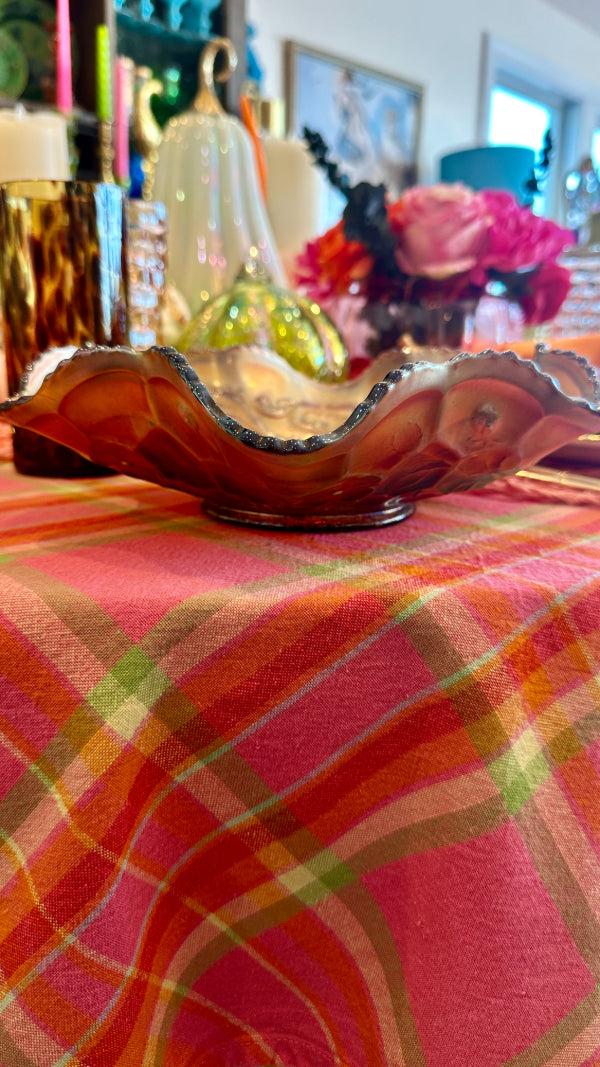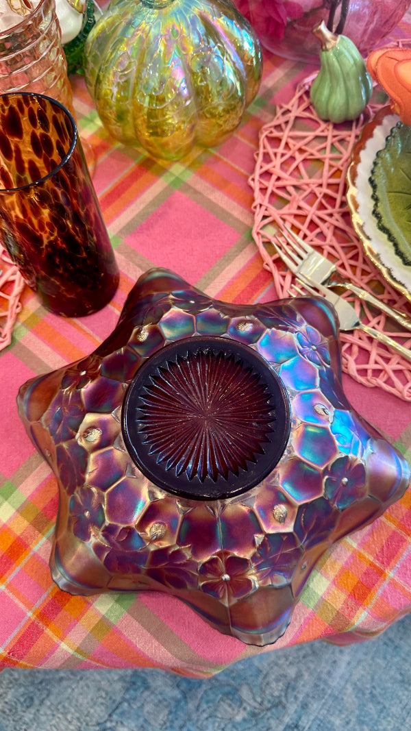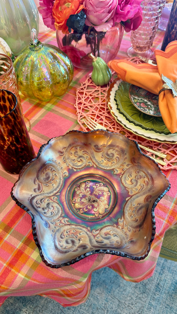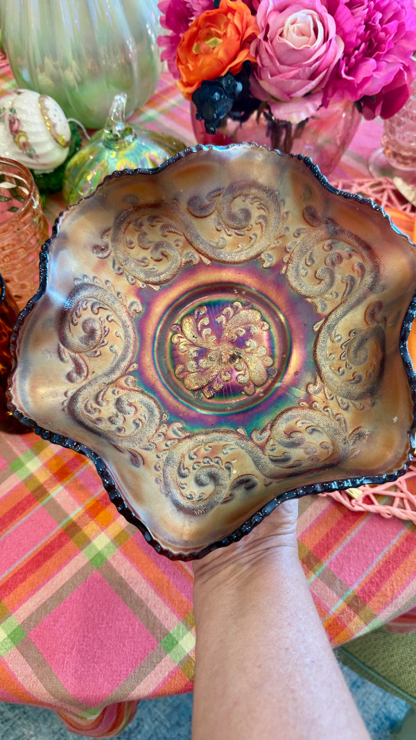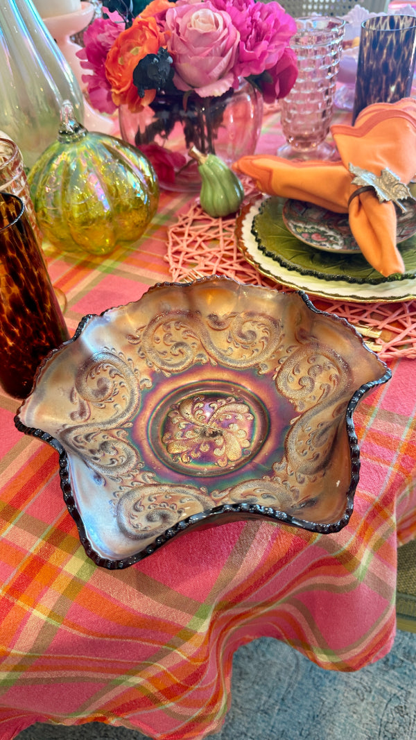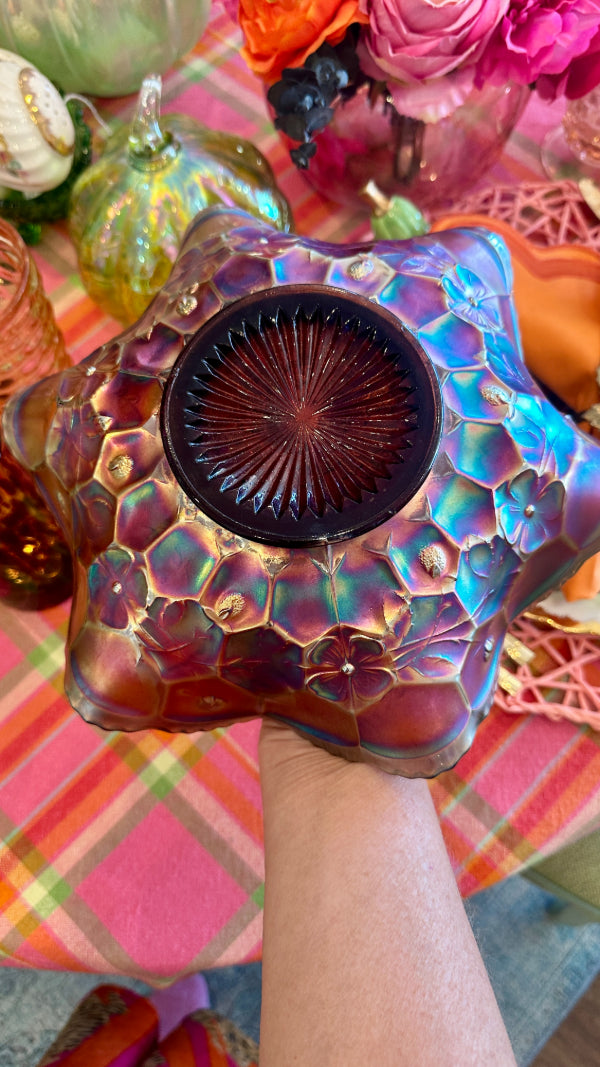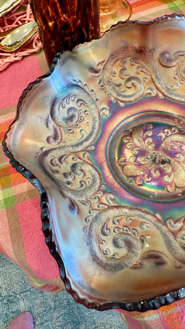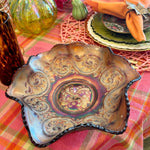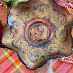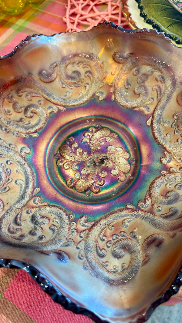 Vintage Ruffled Edge Bowl, Feathered Serpent, Honeycomb, Clover, Irridescent, Rare