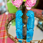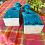 Vintage Foo Dog, Blue Ceramic, Mid Century Modern Large Size, 2 Available, EACH SOLD SEPARATELY See picture details as they are part of the details.