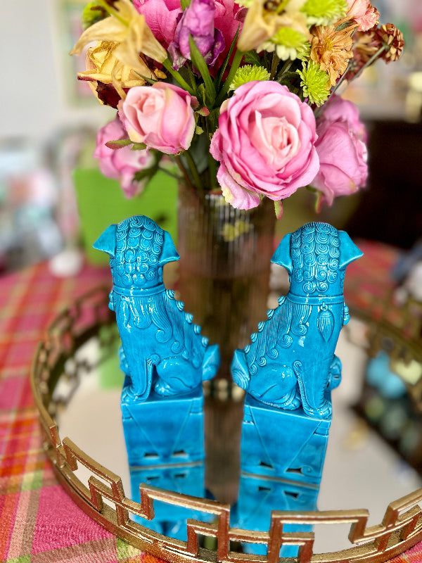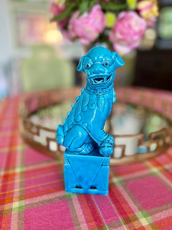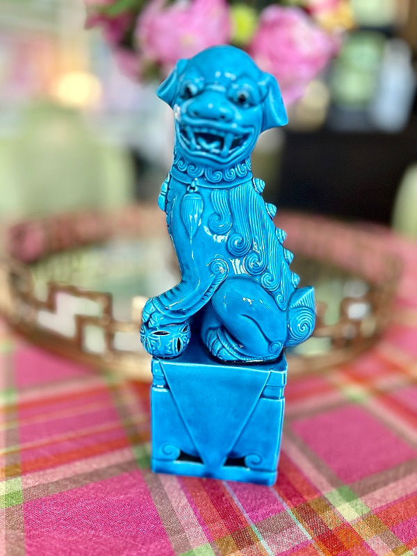 Vintage Foo Dog, Blue Ceramic, Mid Century Modern Large Size, 2 Available, EACH SOLD SEPARATELY
