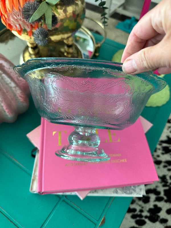 Vintage Footed Compote Indiana Depression Glass Madrid Aqua Blue