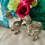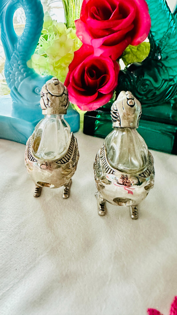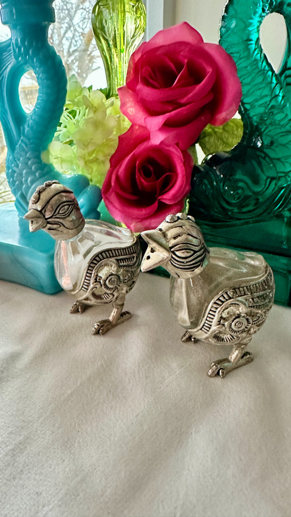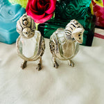 This Vintage Salt and Pepper Shaker set by Godinger features charming bird figures crafted in a combination of silver-tone metal and clear crystal. The elegant contrast of materials highlights Godingervsignature decorative style, blending classic refinement with whimsical detail.