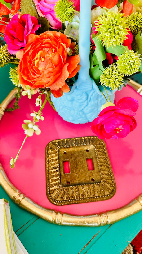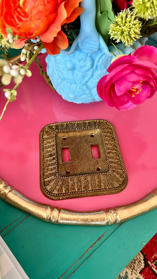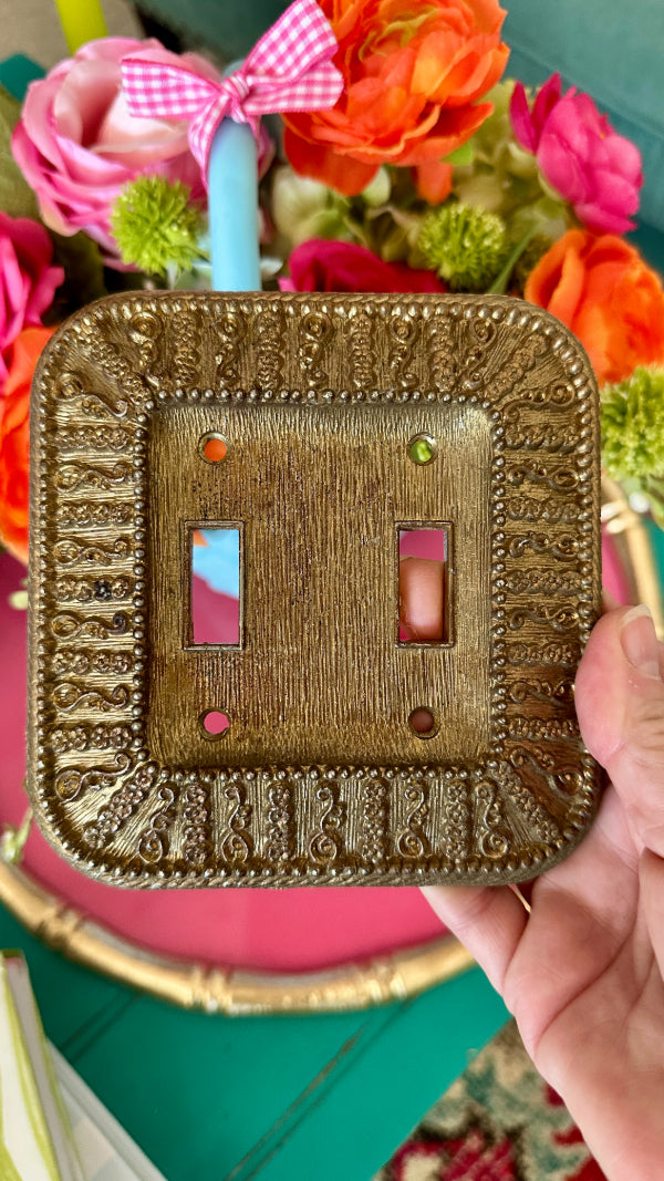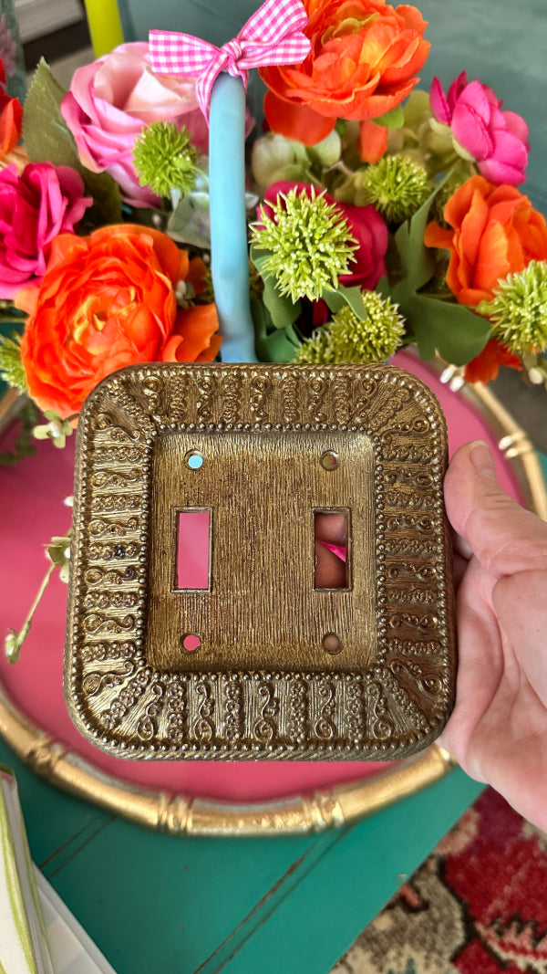 Vintage Gold Ornate Light Switch Plate, 1968, 2 Switch holes