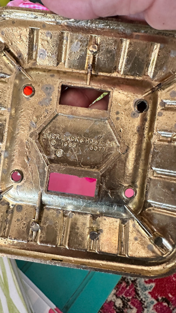 Enhance your home décor with this stunning vintage gold ornate light switch plate from 1968. Designed for a double switch, this beautifully crafted cover features intricate detailing and an elegant gold finish, adding a touch of timeless charm to any room. Perfect for vintage-inspired interiors, antique restorations, or anyone looking to elevate their space with classic sophistication. Durable and stylish, this piece is a unique find that effortlessly blends function with decorative appeal.