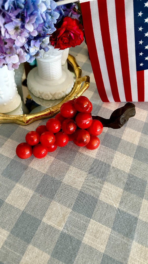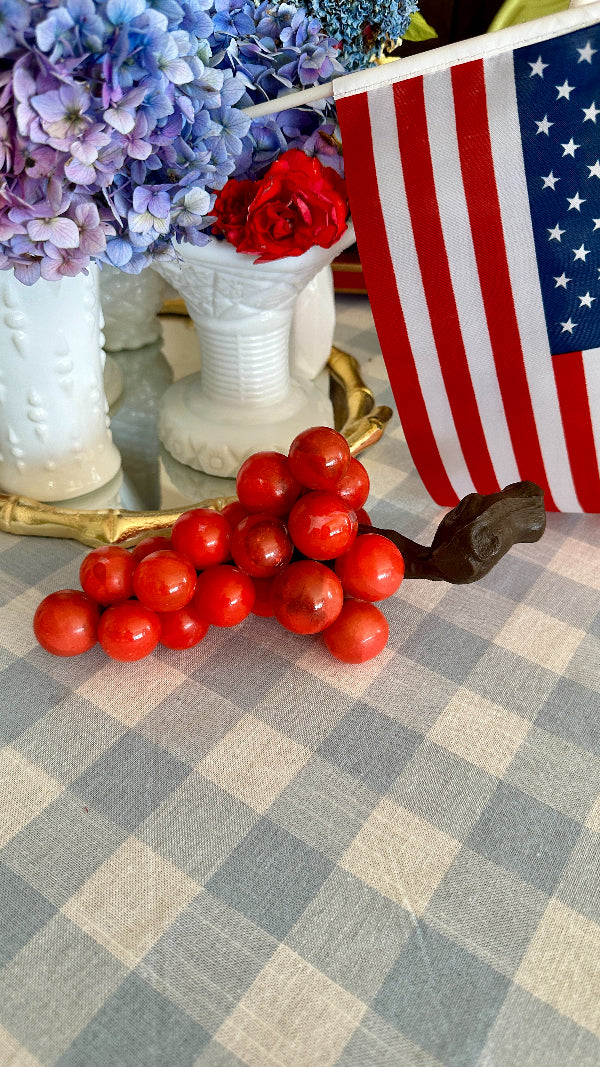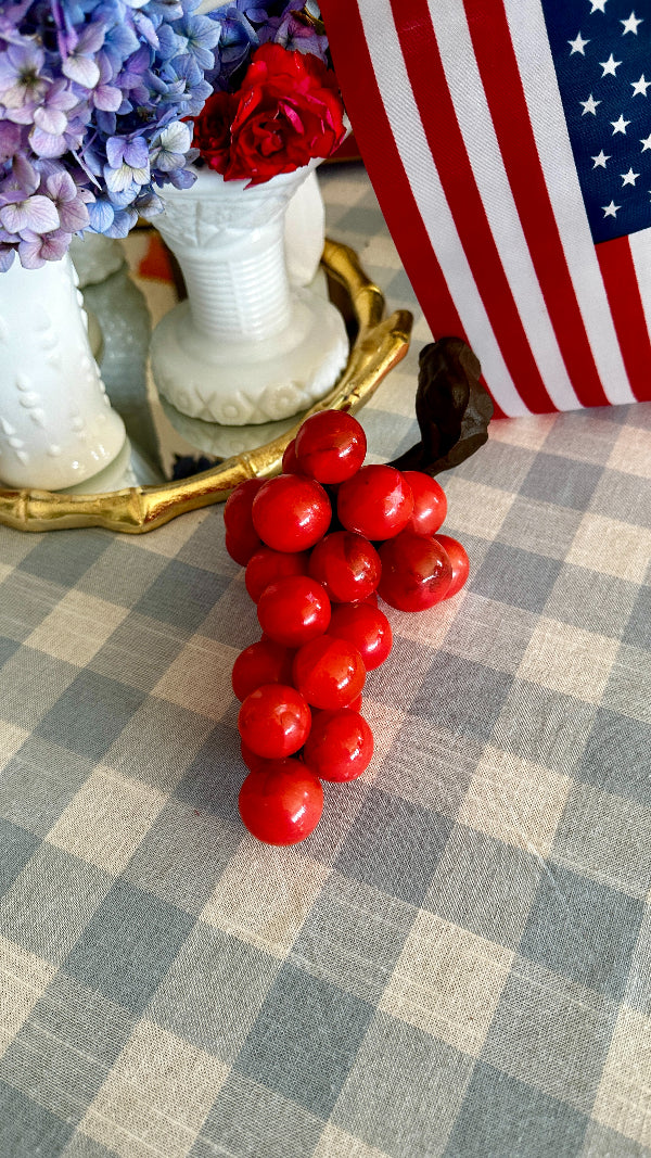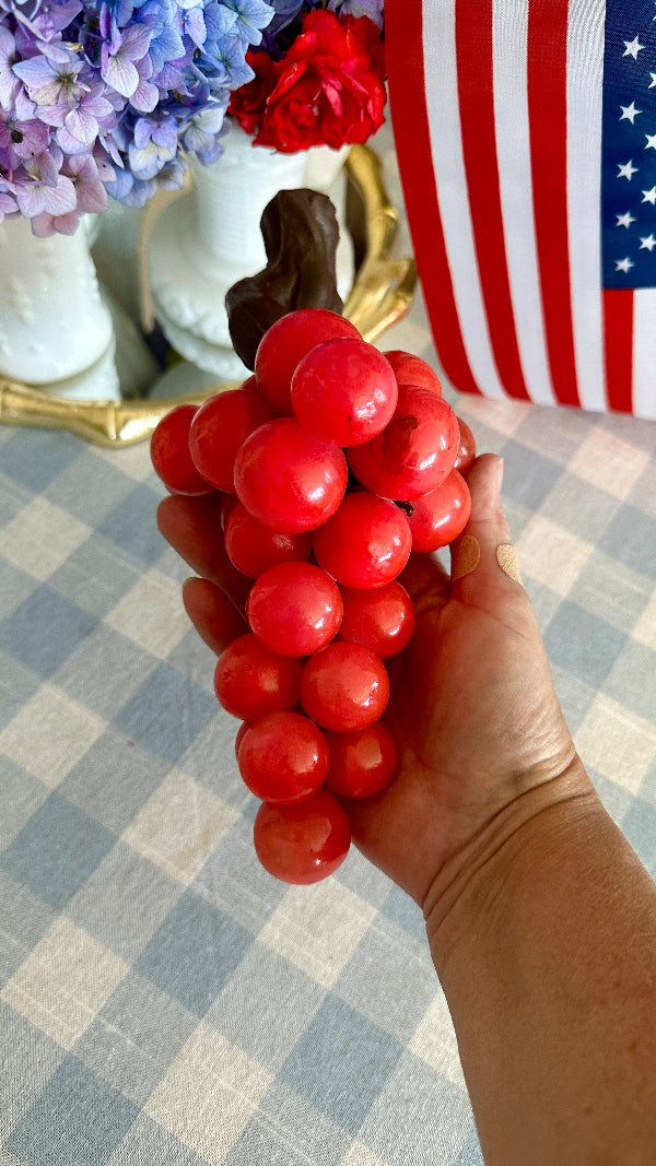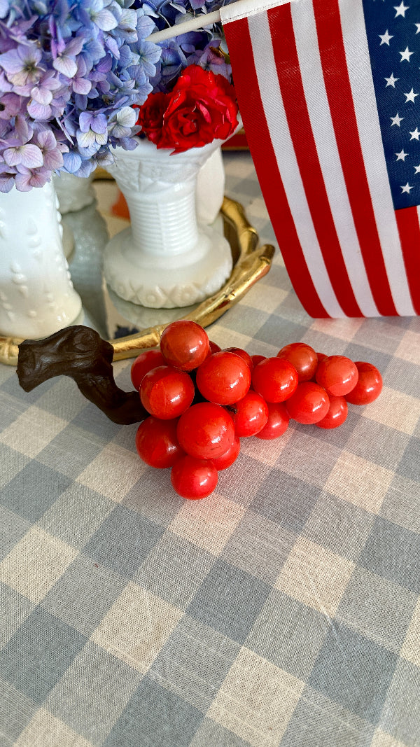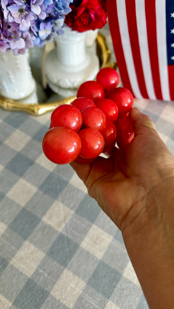 Vintage Grape Figurine, Marble Glass, Red with Brown Stem, MCM