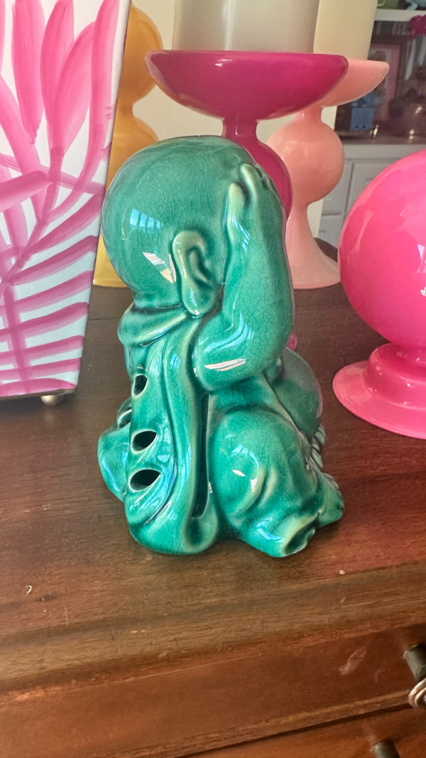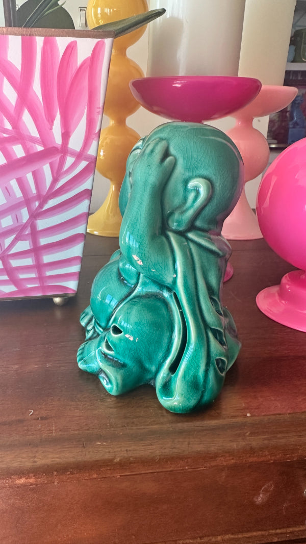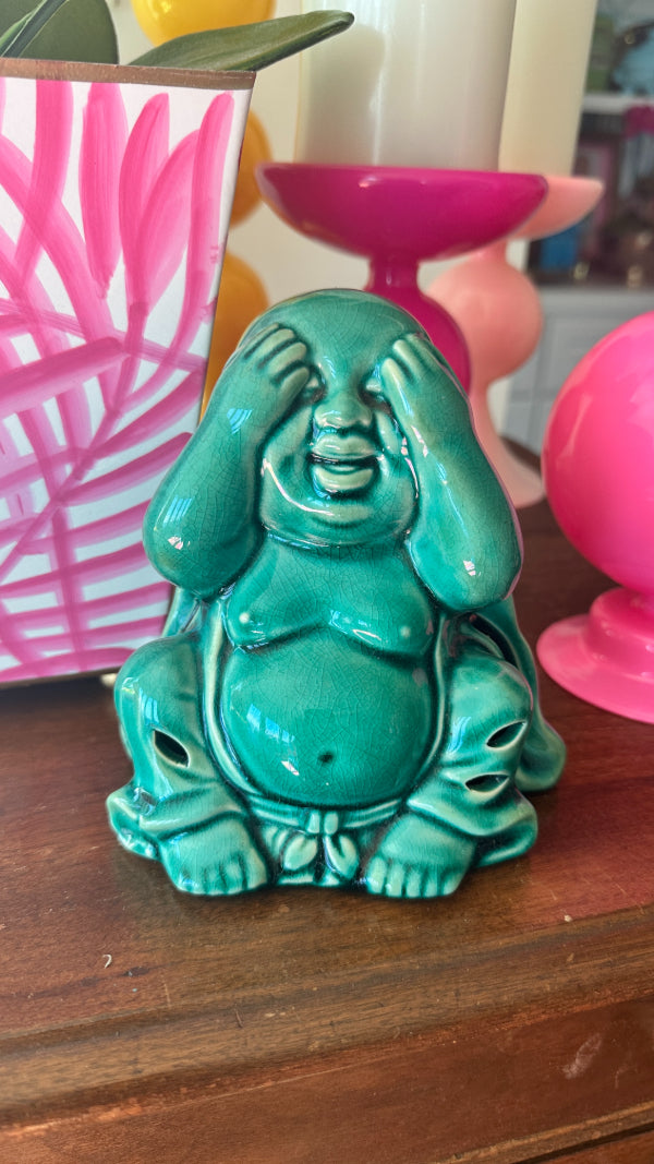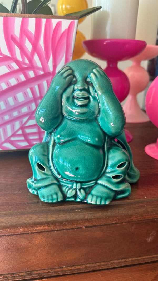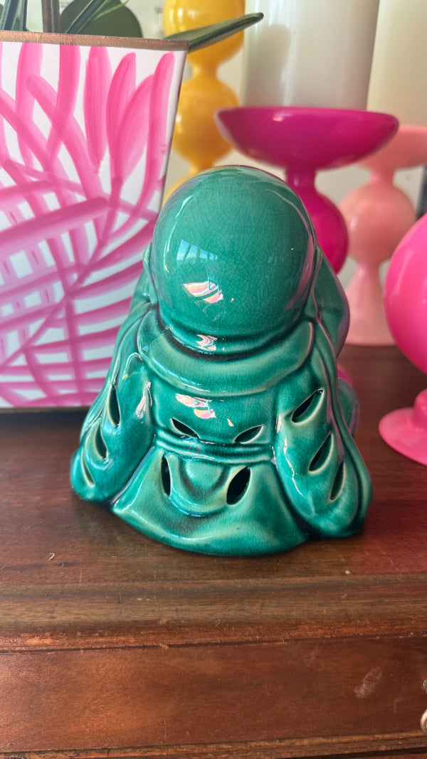 This Vintage Green Buddha Figurine brings a sense of tranquility and timeless elegance to any space. Crafted with intricate details and finished in a serene green hue, this piece captures the peaceful presence of Buddha while adding a touch of vintage charm. Whether placed in a meditation area, living room, or as part of a decorative collection, this figurine promotes calmness and mindfulness. Its unique color and craftsmanship make it a standout accent piece, perfect for those who appreciate both spiritual symbolism and vintage artistry.