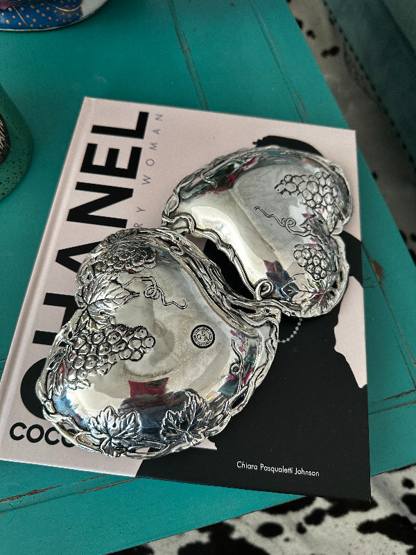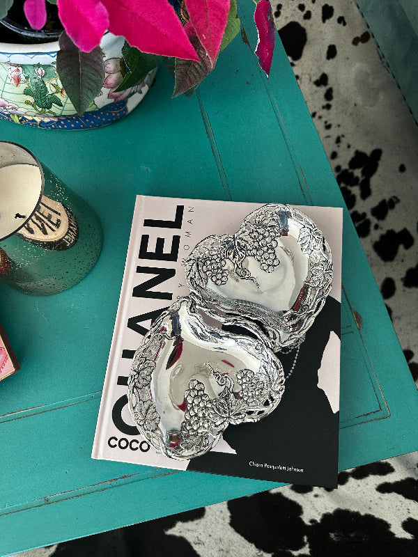 Exquisite Vintage Heart Dish by Goddinger, Silverplate, adorned with the charming Grapevine Pattern. Perfect for adding a touch of vintage charm to your table, the heart-shaped design and intricate grapevine detailing make this dish a standout in both style and functionality. Makes a perfect gift..especially for your Valentine.