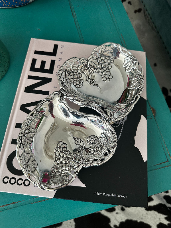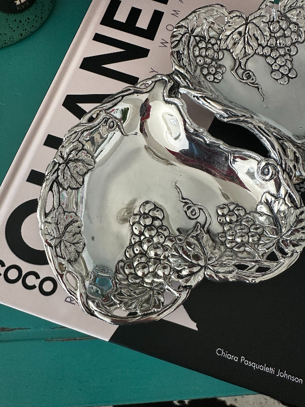 Vintage Heart dish, Goddinger Silverplate, Grapevine Pattern