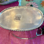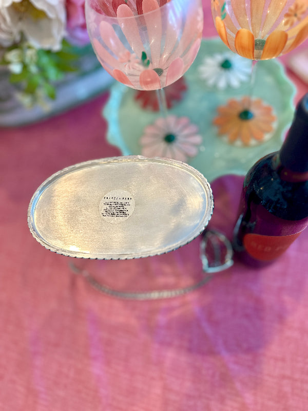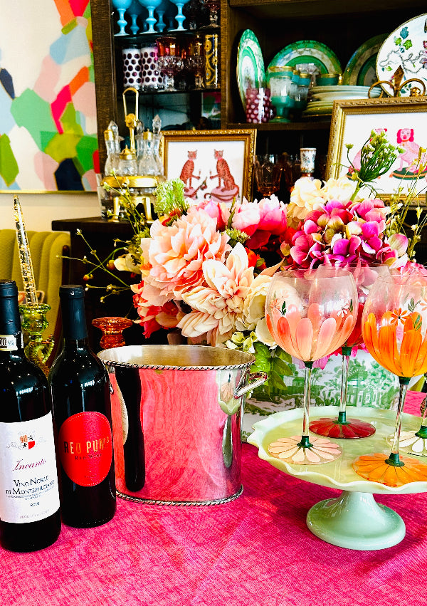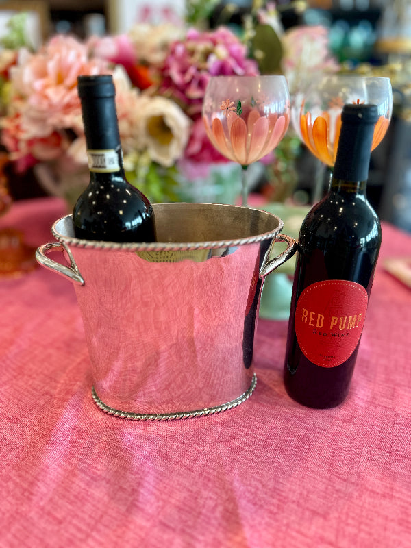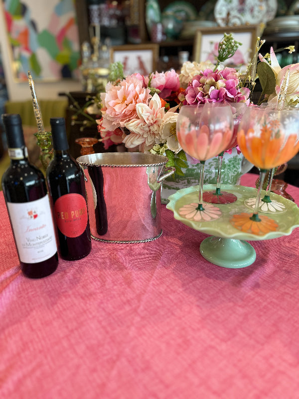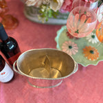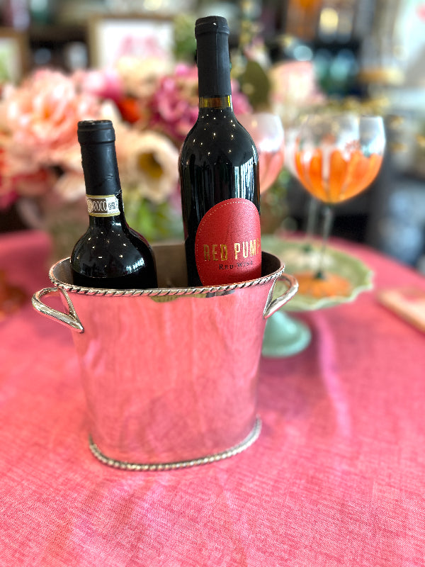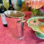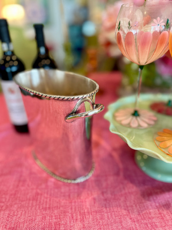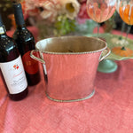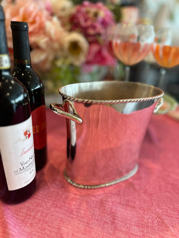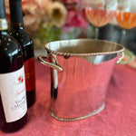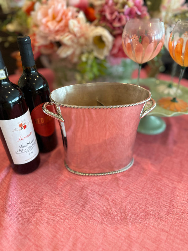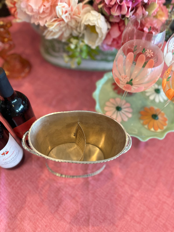 The Vintage Ice Bucket from Pottery Barn. Crafted with a sleek silver tone finish, this divided wine / champagne cooler is the epitome of functional elegance. Whether hosting an intimate gathering or a lavish celebration, this vintage treasure from the year 2000 adds a touch of class to any occasion. Elevate your entertaining game with this exquisite piece that seamlessly blends style and practicality.