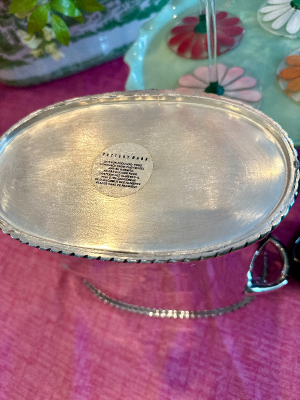 Vintage Ice Bucket, Silver Tone, Pottery Barn, Divided Wine/Champagne Cooler, 2000