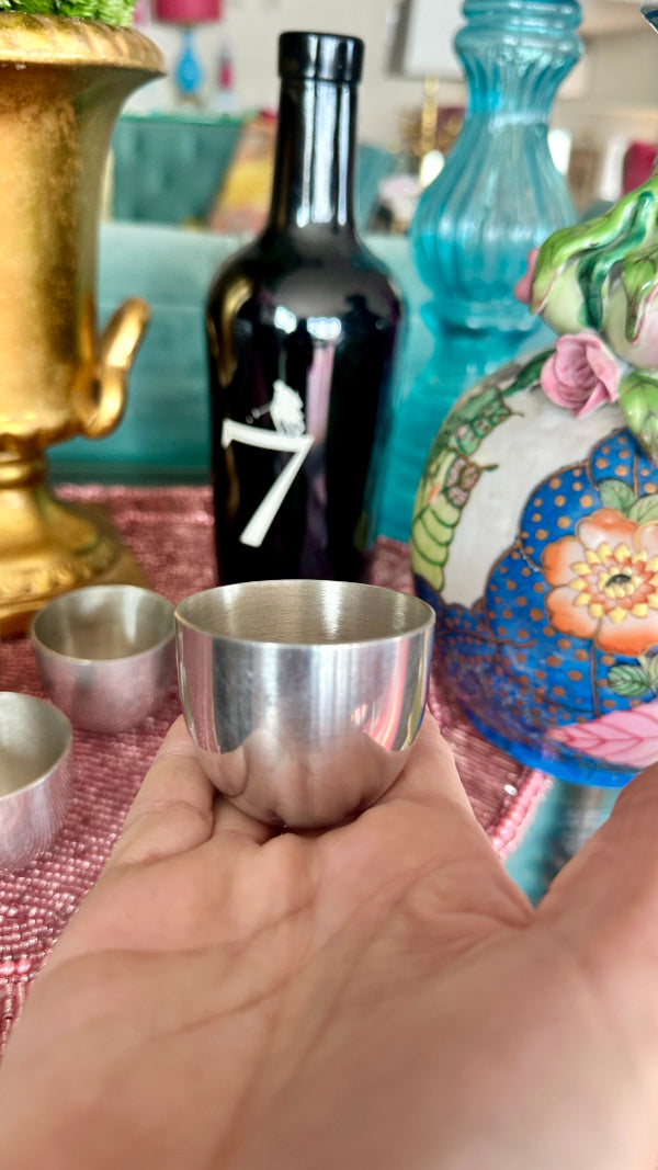 Perfect for collectors of Steiff pewter, historical reproductions, or miniature drinkware, this set is ideal for display, collection, or gifting. The compact size makes them a versatile addition to a vintage or themed barware collection.
