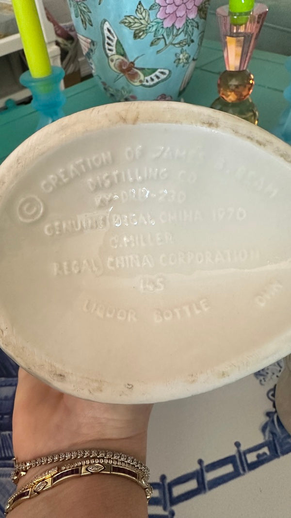 This Vintage Jim Beam "Penny The Poodle" Decanter is a charming collectible that adds character to any display. Crafted with attention to detail, this unique decanter features a playful poodle design and is part of Jim Beam’s popular series of collectible decanters. A perfect addition for whiskey enthusiasts and collectors alike, combining both functionality and nostalgia in one delightful piece.