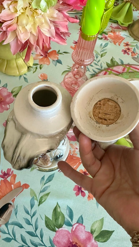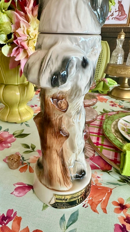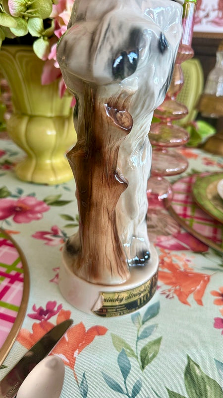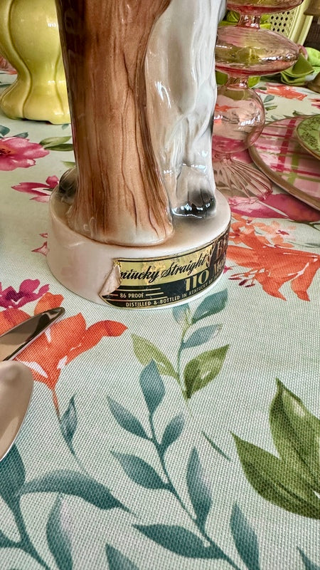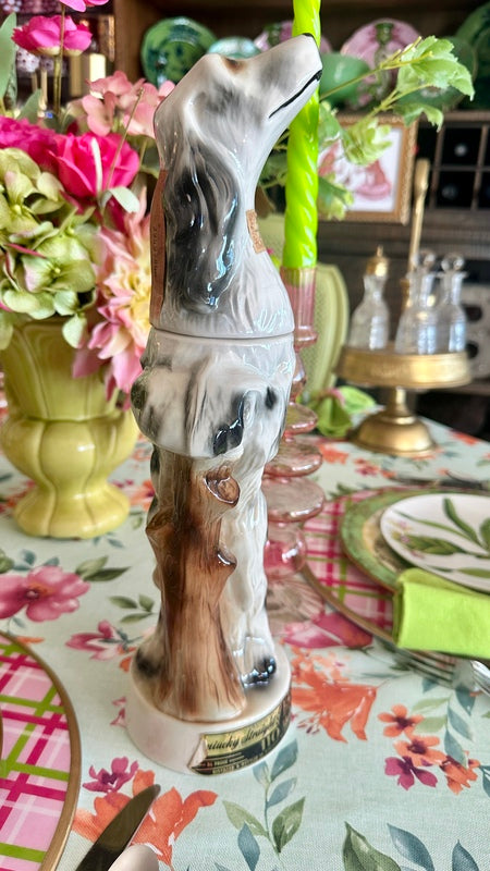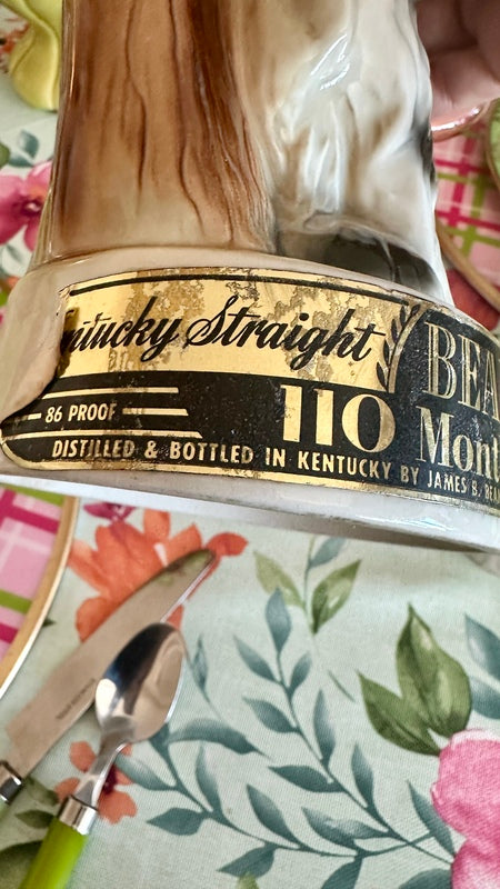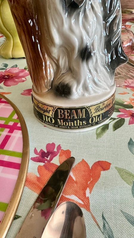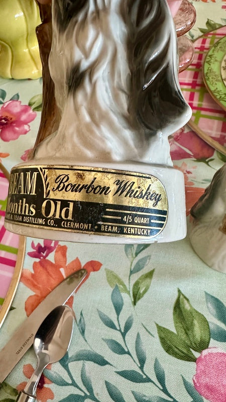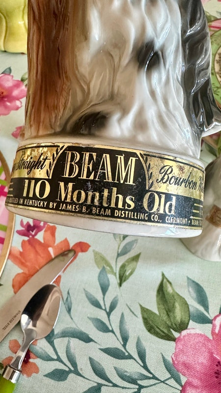 This Vintage Jim Beam Regal China Decanter from 1959 features a beautifully detailed Spaniel Setter hunting dog design, making it a standout piece for collectors. Crafted with precision, this decanter is part of Jim Beam’s iconic series, combining functionality with artistic appeal. The cork is broken off but the piece is there for repair. A must-have for whiskey enthusiasts and collectors of vintage animal-themed decanters, this piece offers both elegance and nostalgia.