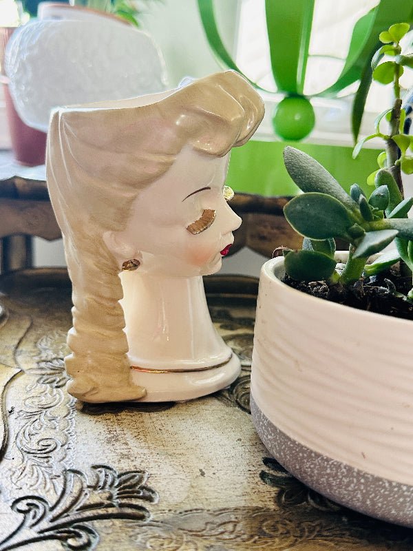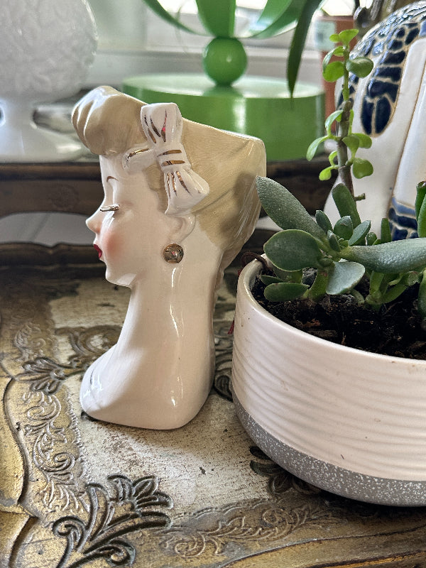 Vintage Planter, Lady head Figure, Japan, Ceramic