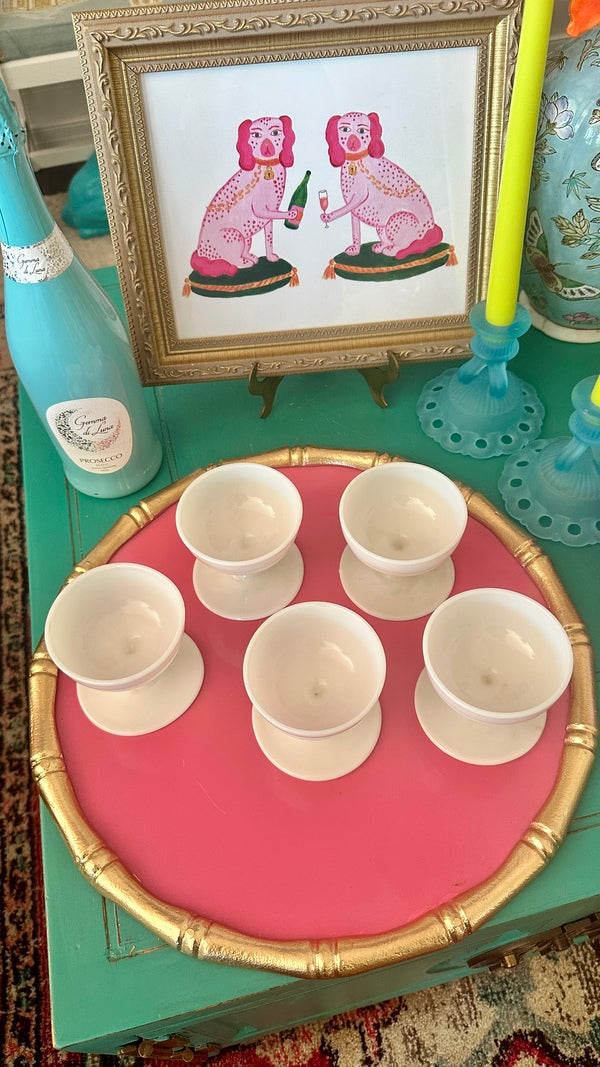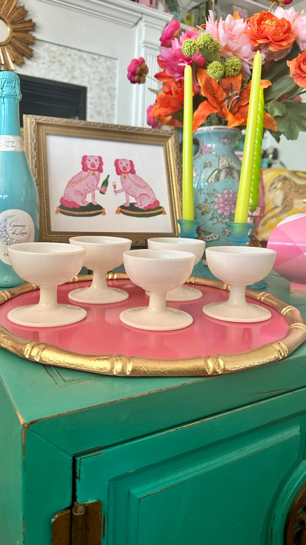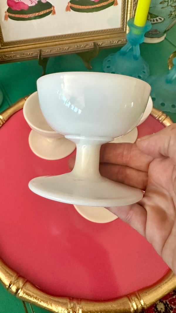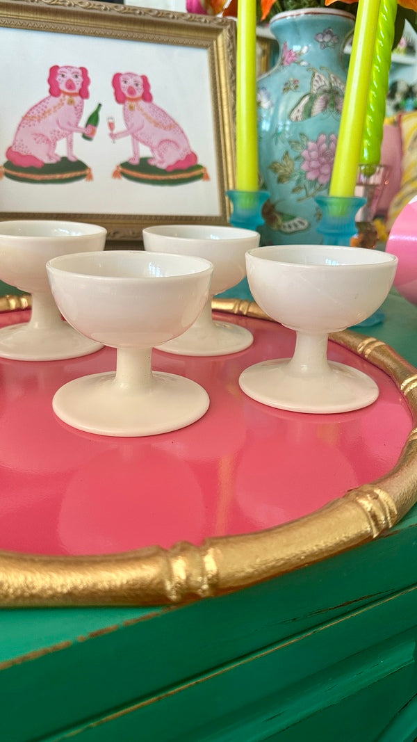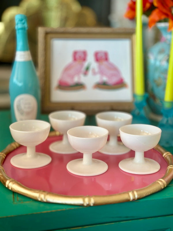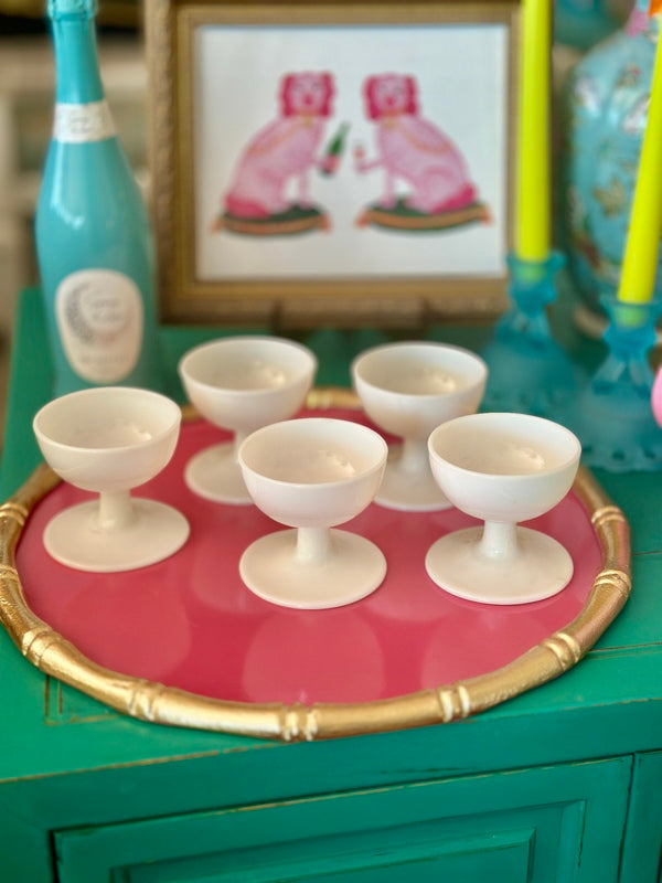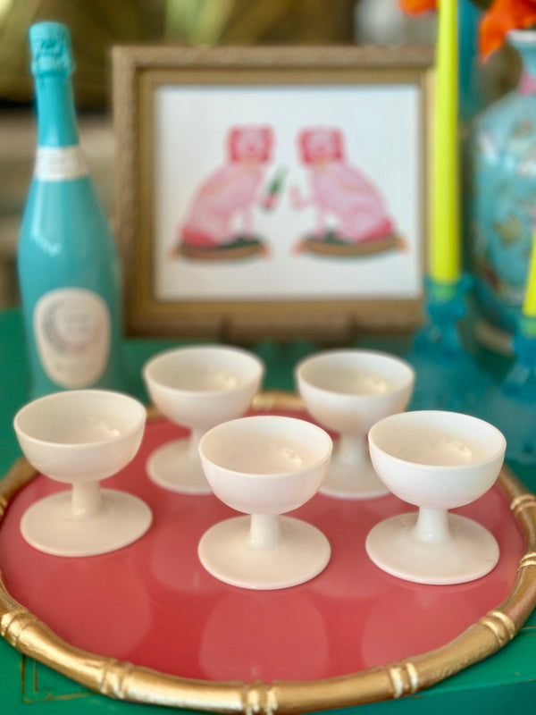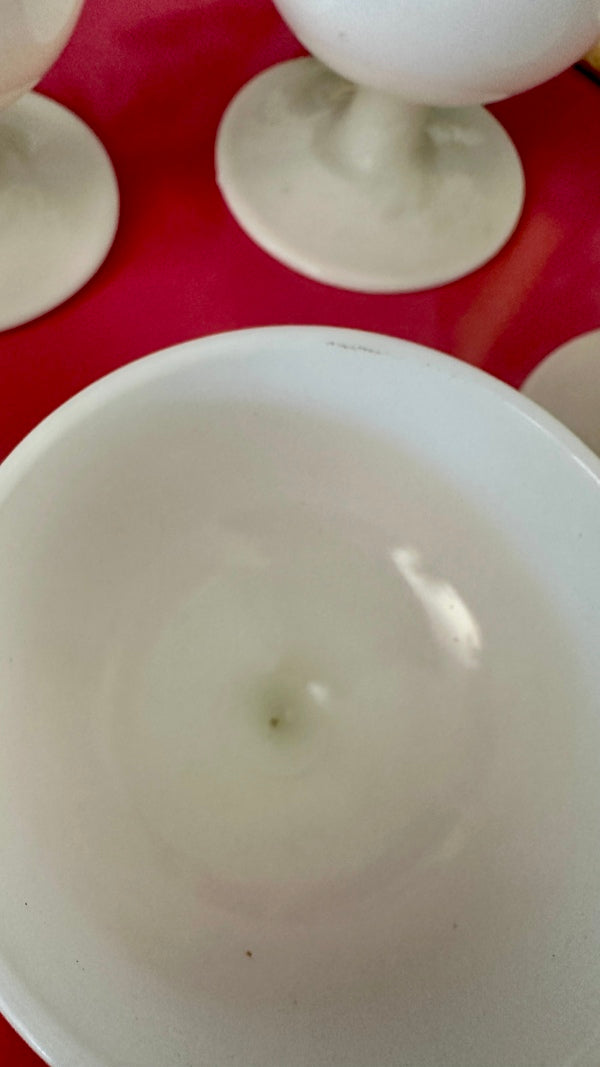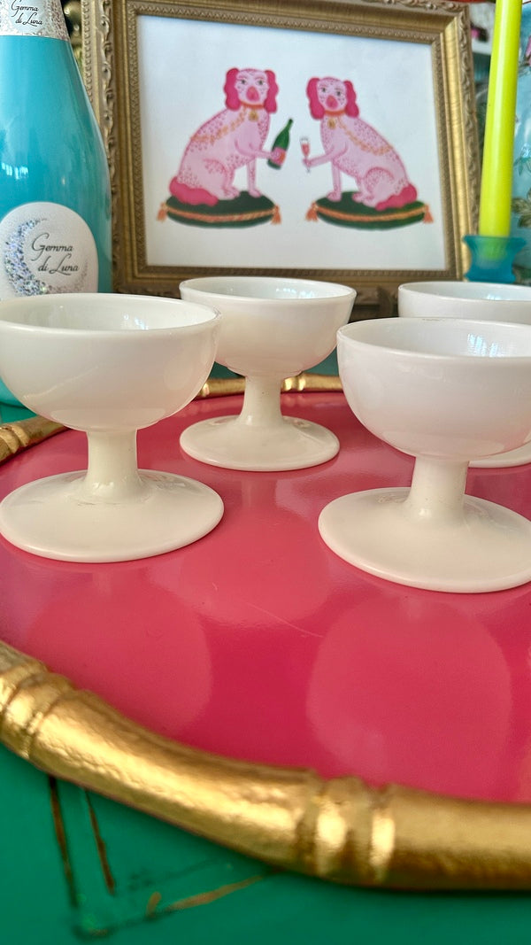 Vintage Opaline Champagne Coupes, White, Milk Glass, Set of 5