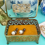 This elegant Vintage Ormolu Casket by Matson exemplifies classic Hollywood Regency style, featuring a footed brass frame with beveled glass panels and intricate bird and floral motifs. The finely detailed ormolu work adds a sense of luxury and romance, while the glass beautifully showcase the contents within. Perfect as a jewelry box, vanity accent, or display piece, this refined casket brings timeless glamour and sophisticated charm to any space.