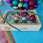 Vintage Ornaments in Box - Assorted Green, Red, Silver, Blue