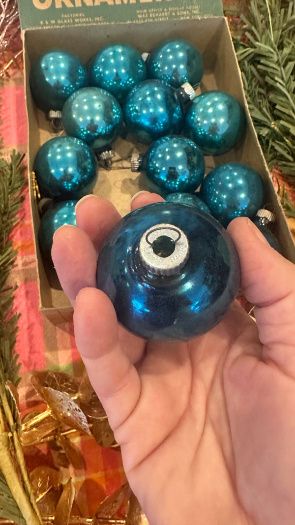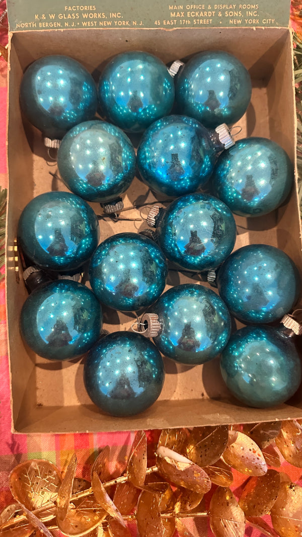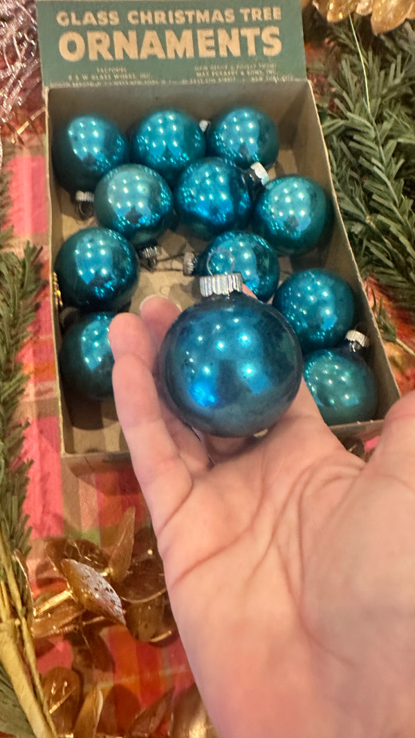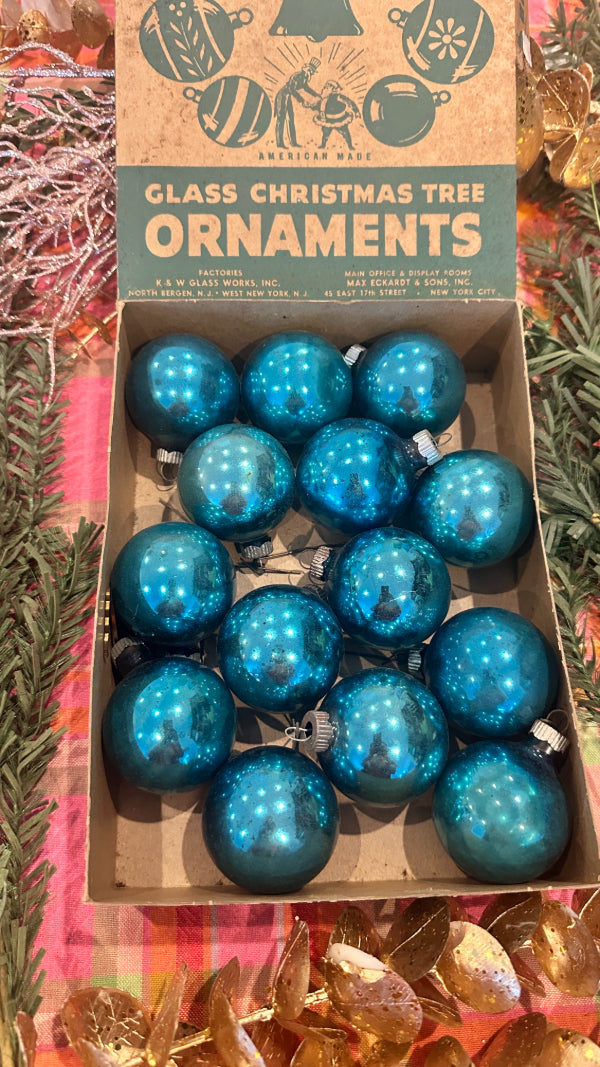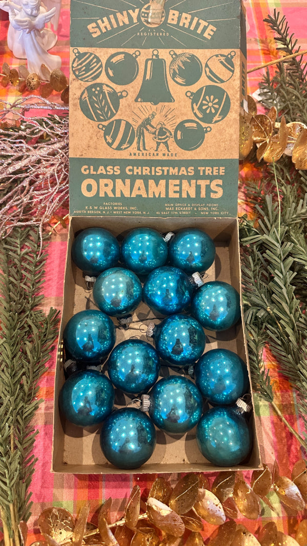 Vintage Ornaments, Shiny Brite Turquoise Blue, Set of 14