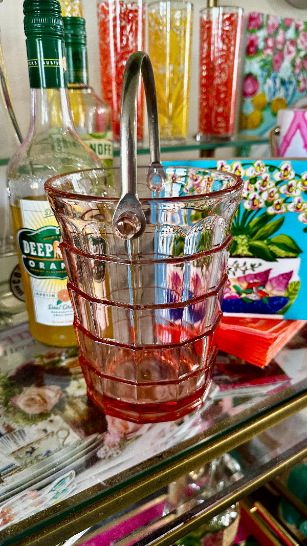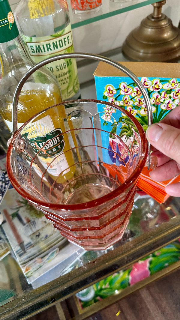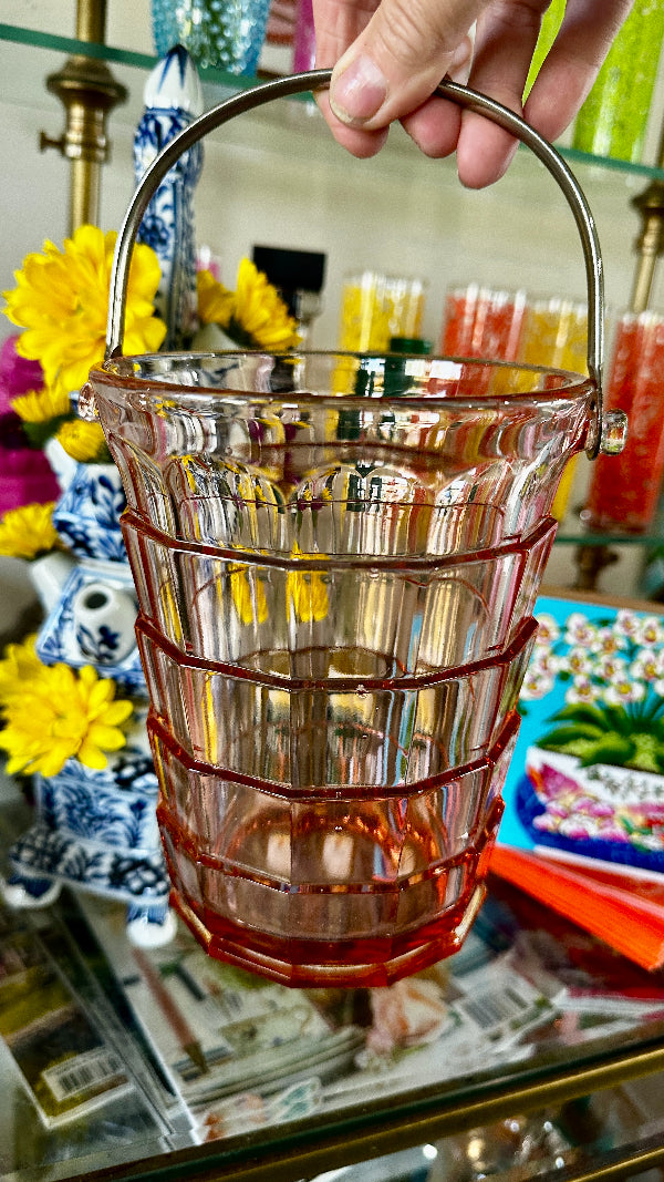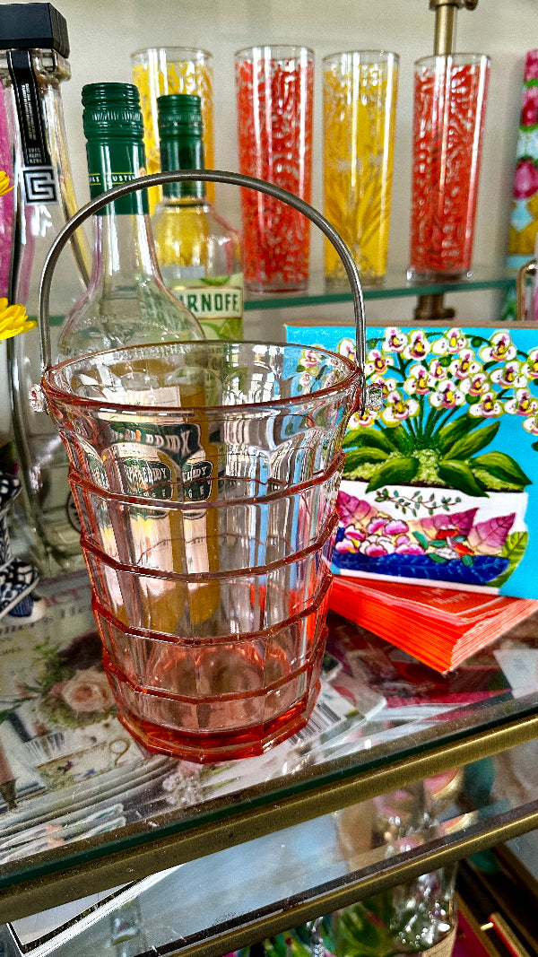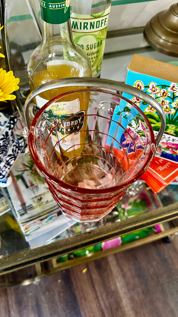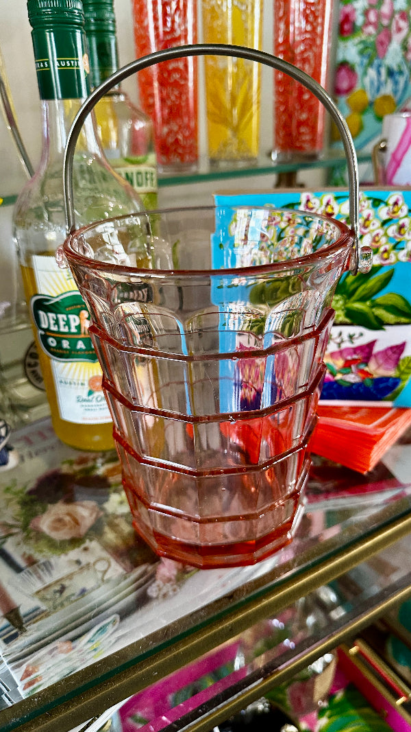Vintage Pink Ice Bucket, Tea Room Depression Glass, Indiana Glass, Art Deco,1926-1931, Silver Tone Handle