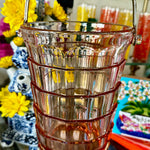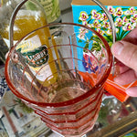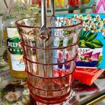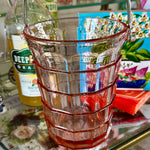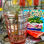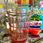 This Vintage Pink Ice Bucket from Indiana Glass, crafted during the Art Deco era (1926-1931), combines elegance and functionality. Made from distinctive Depression Glass in the Tea Room pattern, it features a delicate pink hue and a sophisticated silver-tone handle. Perfect for adding a touch of vintage glamour to your gatherings, this ice bucket reflects the unique style and craftsmanship of the Art Deco period, making it both a practical accessory and a striking decorative piece.