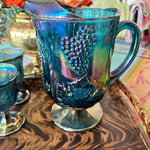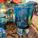 Vintage Pitcher Carnival Blue Glass, Grapevine Pattern