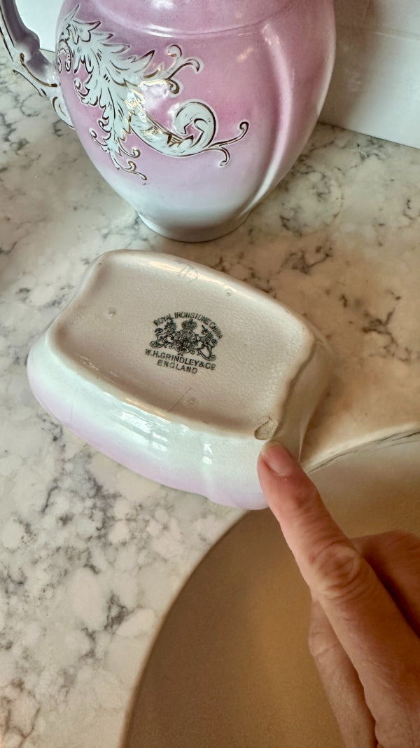 Vintage Pitcher & Soap Dish, Royal Ironstone WH Grindley & Co. England