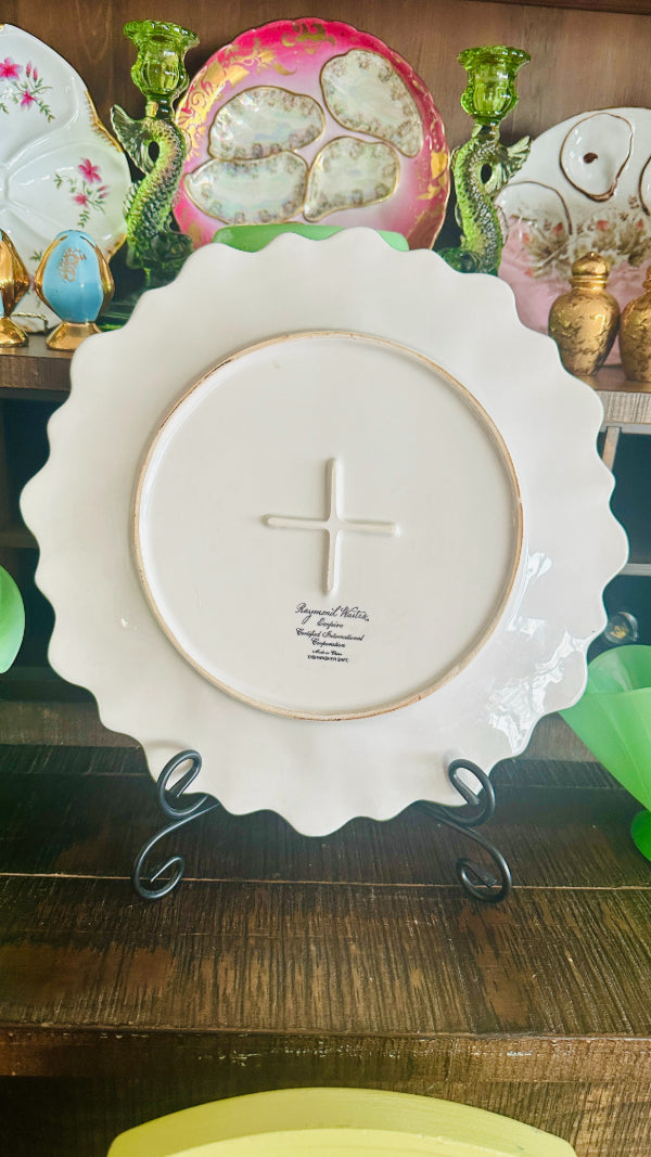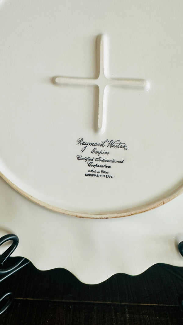 Add an exotic, vintage touch to your table or display with this Raymond Waites “Empire” Collection Monkey Plate. Featuring a richly detailed monkey motif inspired by classic chinoiserie and global design influences, this decorative platter showcases the bold, artistic style Raymond Waites is known for. Crafted with quality materials and intricate patterning, it makes a striking serving piece or wall display. As part of the now-discontinued Empire collection, this rare platter is highly sought after by collectors and lovers of distinctive vintage décor. Perfect for entertaining, shelf styling, or adding character to any eclectic or traditional space.