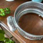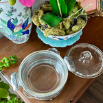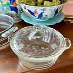 Introducing vintage charm for your kitchen: the Vintage Pyrex Dish with an etched lid, nestled in a silvertone metal holder. This timeless piece adds a touch of elegance to your culinary creations. Perfect for serving and storing your favorite dishes, this vintage treasure seamlessly combines style and practicality. Elevate your kitchen decor with this exquisite Pyrex dish, sure to become a beloved heirloom for years to come.