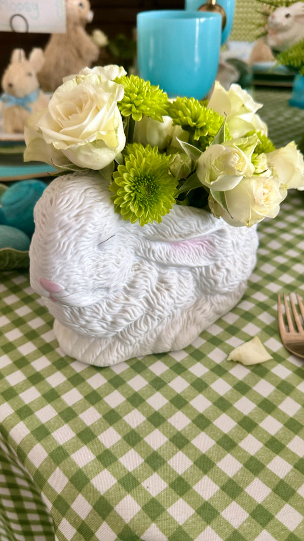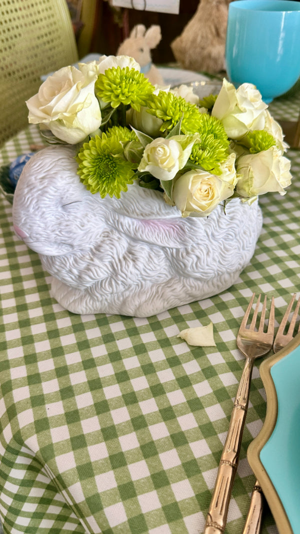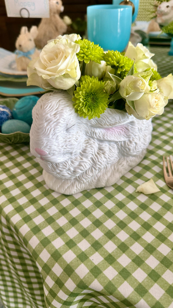 Vintage Rabbit Planter 1987, White Bisque Pottery, F.T.D.A
