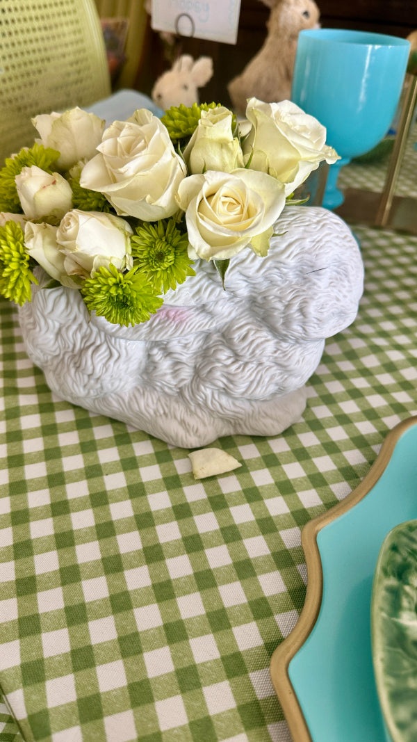 This Vintage Rabbit Planter, crafted in 1987 from white bisque pottery by F.T.D.A., brings a charming and whimsical touch to any space. With its intricate detailing and soft, neutral finish, it’s perfect for displaying small plants or flowers, or simply as a decorative accent. Ideal for springtime, Easter, or anyone who loves vintage, animal-themed decor, this planter is a timeless piece that adds both character and functionality to your home.