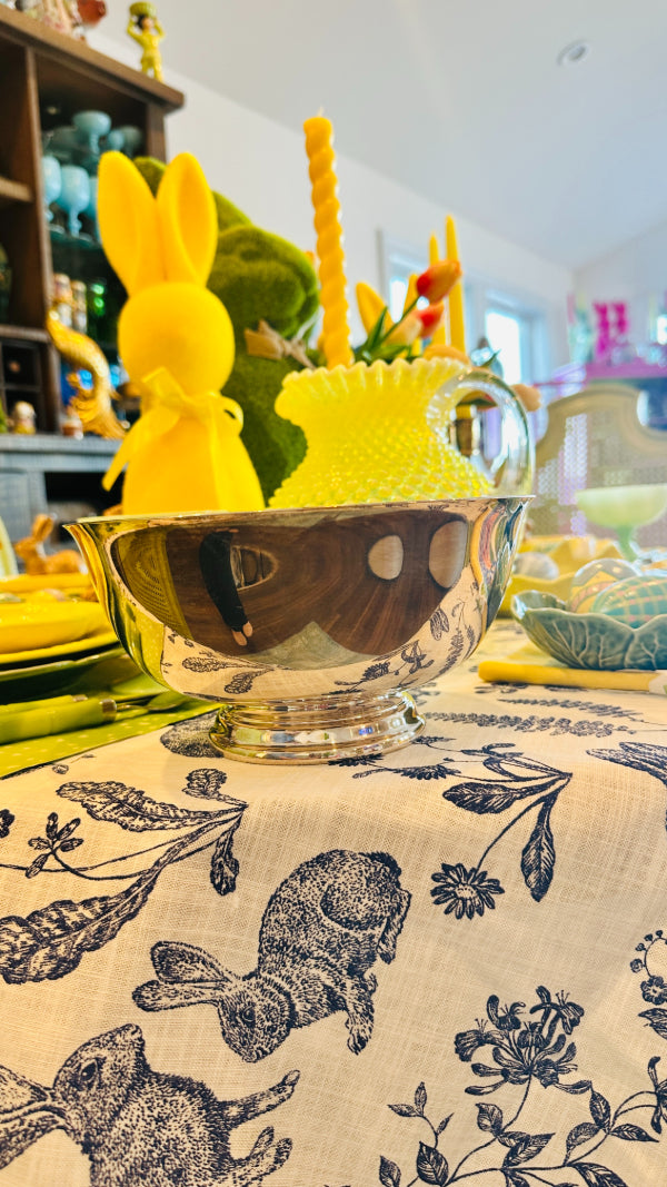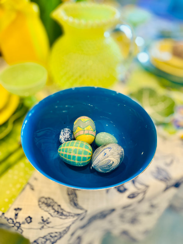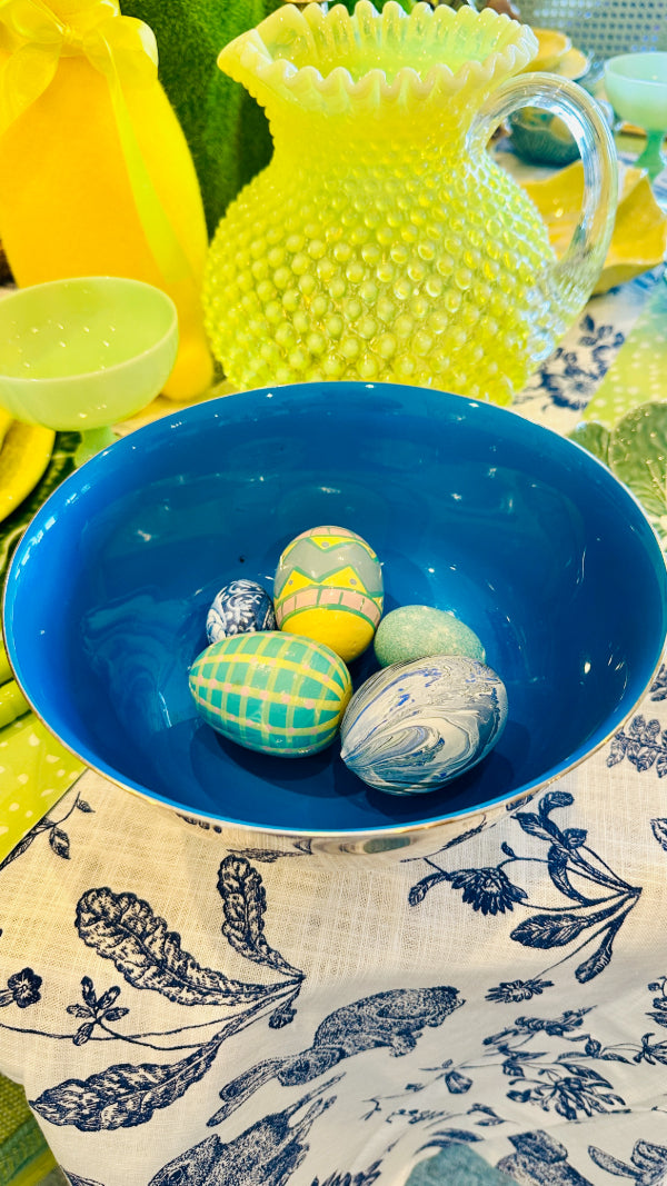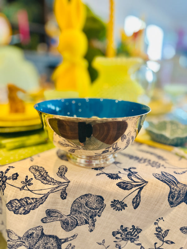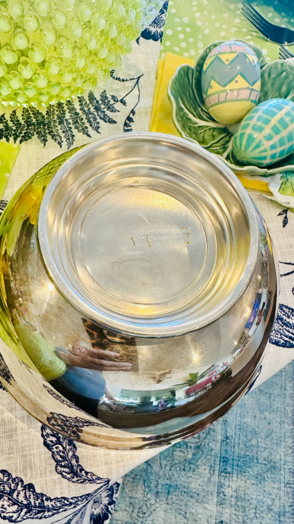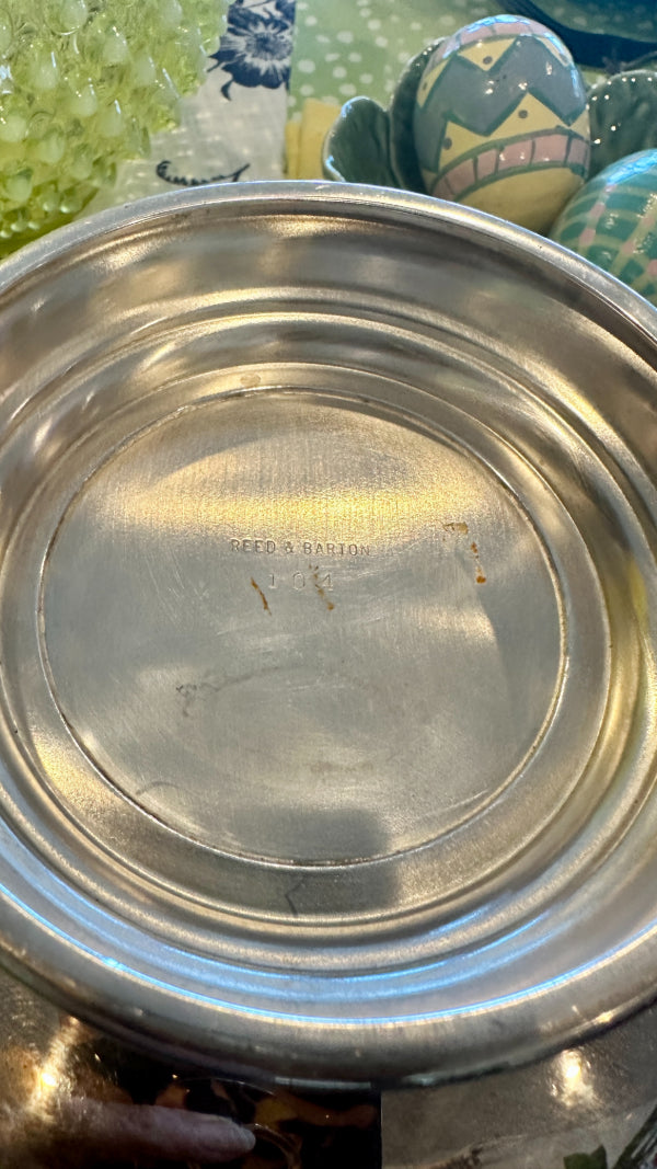 Add a touch of luxury and timeless style to your home with this exquisite vintage Reed & Barton silverplate Revere bowl, featuring a stunning blue enamel interior. The classic Revere design, with its sleek, curved form and gleaming silver exterior, beautifully contrasts with the rich, vibrant blue enamel, making this bowl a true statement piece. Perfect for serving, display, or as part of a vintage collection, it exudes both elegance and functionality. Crafted with the renowned quality of Reed & Barton, this bowl is a rare find that adds sophistication to any space. (A couple small imperfections inside the bowl.)