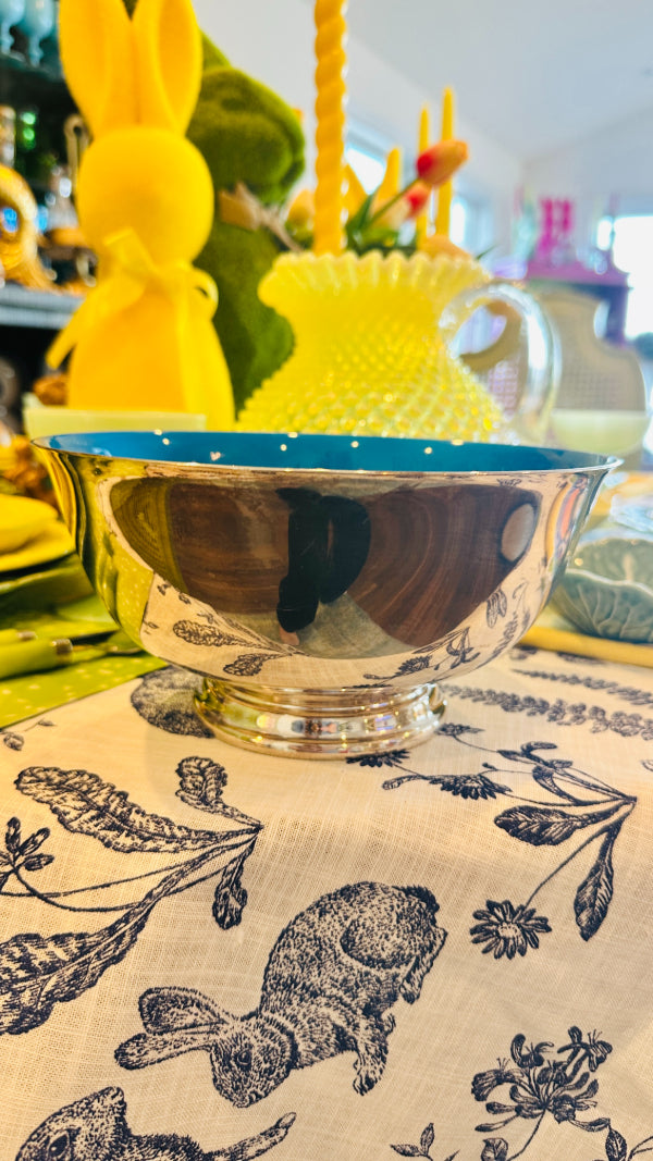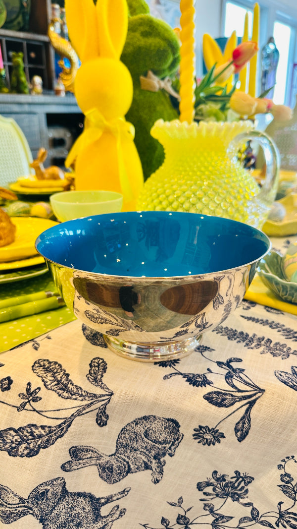Vintage Reed & Barton SIlverplate, Blue Enamel Revere Bowl