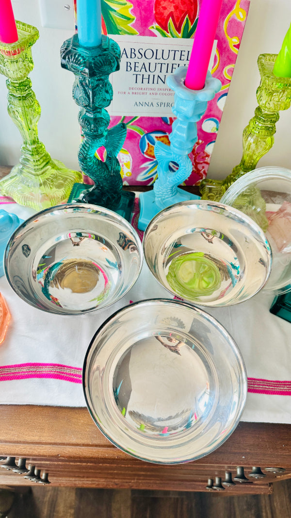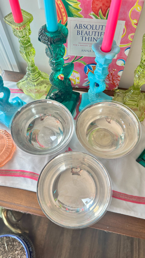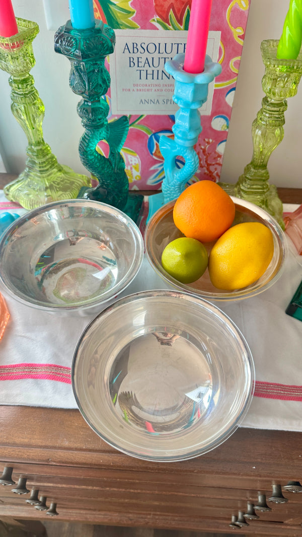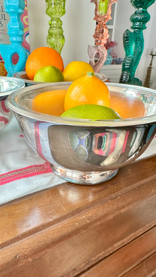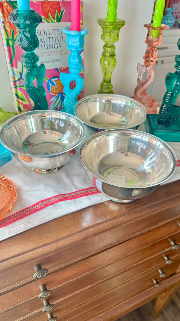 Each piece is sold separately, allowing buyers to purchase a single bowl or multiple examples as desired. Three bowls are currently available. A fine example of Reed & Barton’s quality silverplate craftsmanship, these Revere-style bowls offer versatility and enduring vintage appeal.