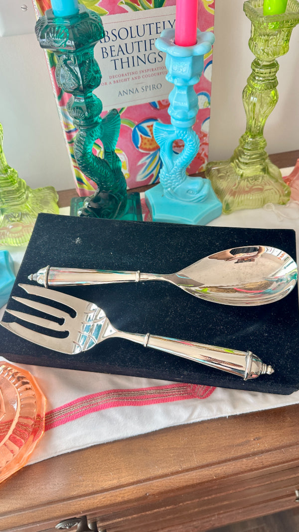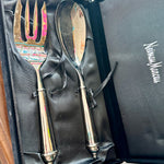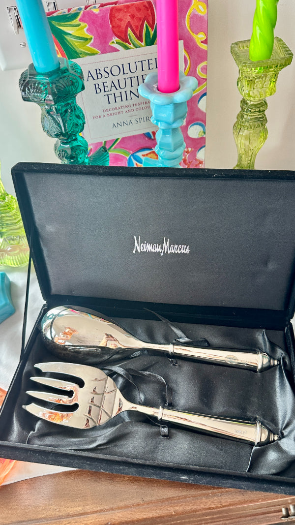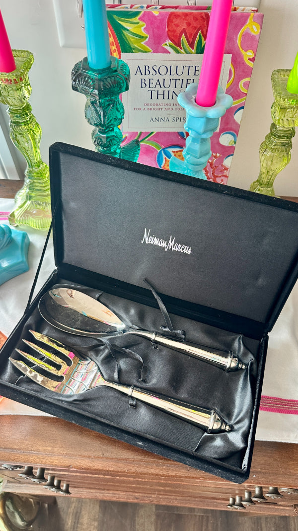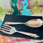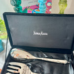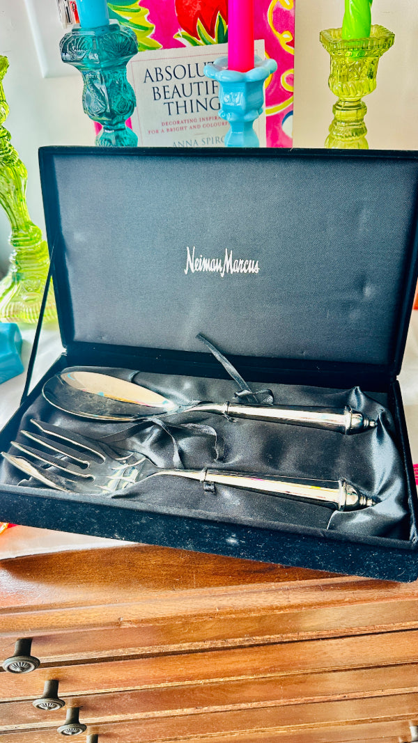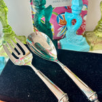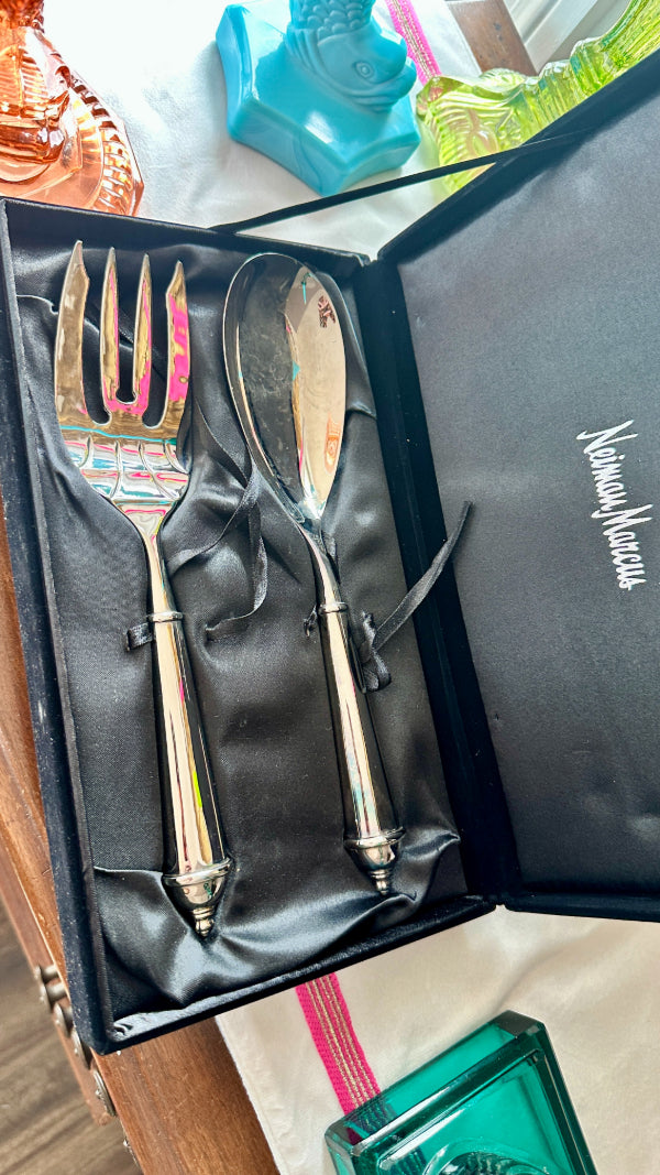 Vintage Salad Serving Utensils, Fork and Spoon, Copenhagen Pattern by Towle, Silverplate,Original Neiman Marcus Box