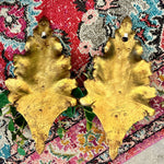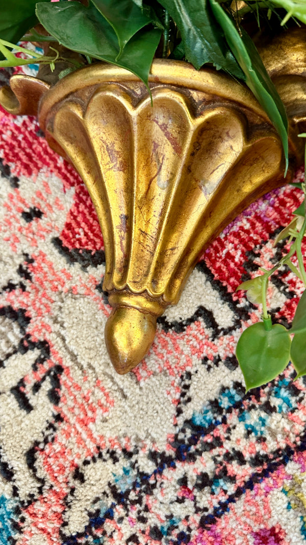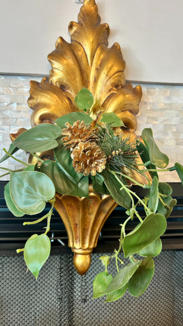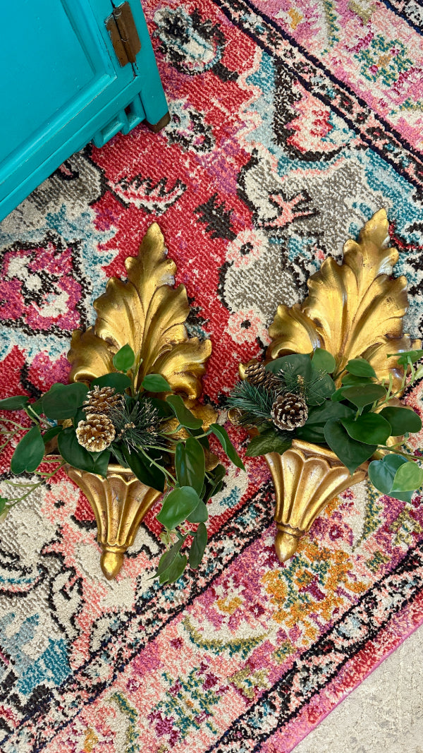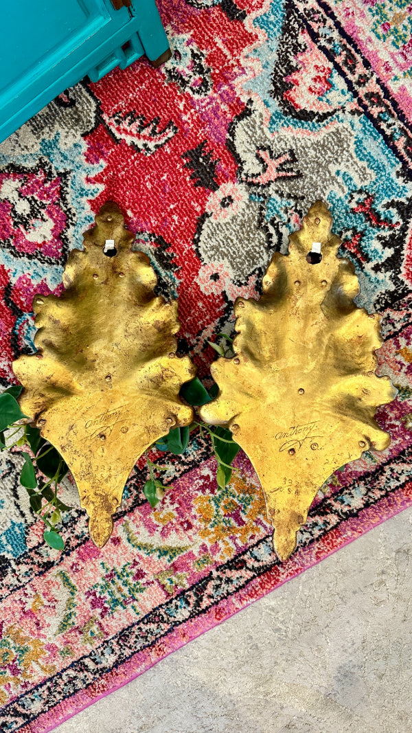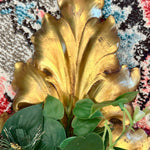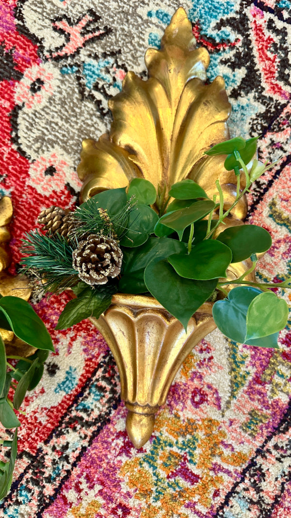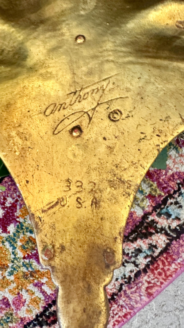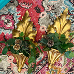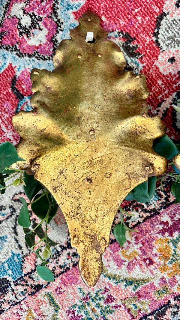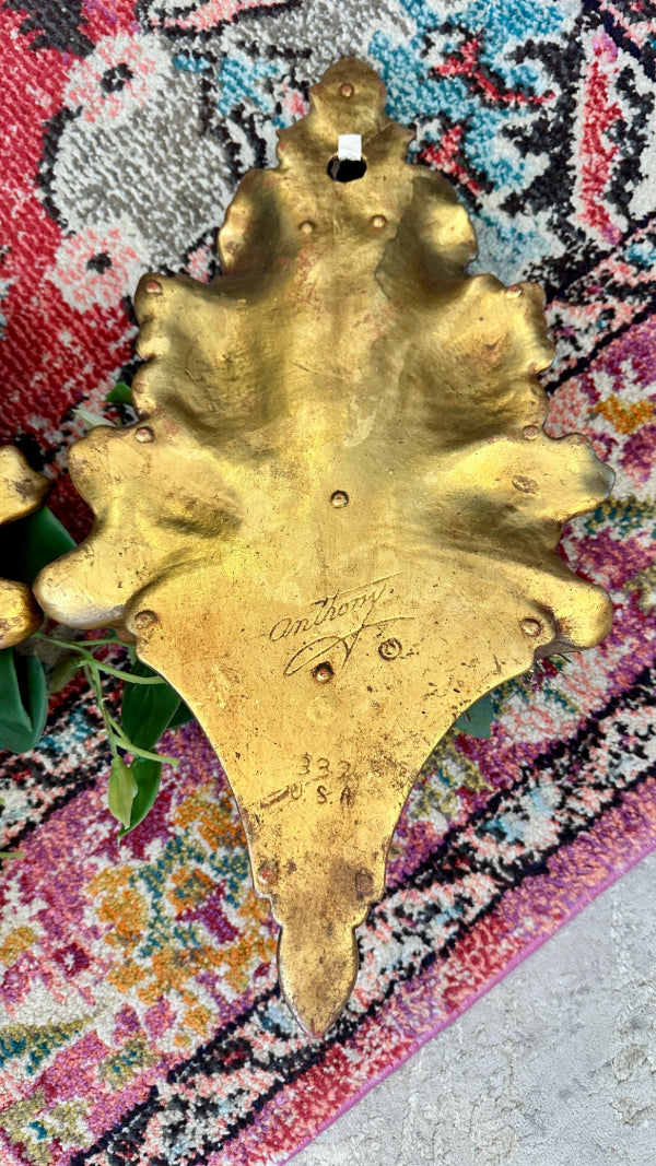 Add mid-century artistry and elegance to your décor with this pair of vintage ceramic sconces/planters, signed by Anthony Freeman of Freeman & McFarlin Potteries, USA. These sculptural wall pieces feature a beautiful gilt (gold-tone) finish, showcasing the signature craftsmanship and sophisticated style that made Freeman & McFarlin an icon of California pottery in the 1950s–60s. Each piece is uniquely detailed, combining form and function—perfect as wall planters or standalone art. A stunning find for collectors of mid-century ceramics or lovers of timeless American design.